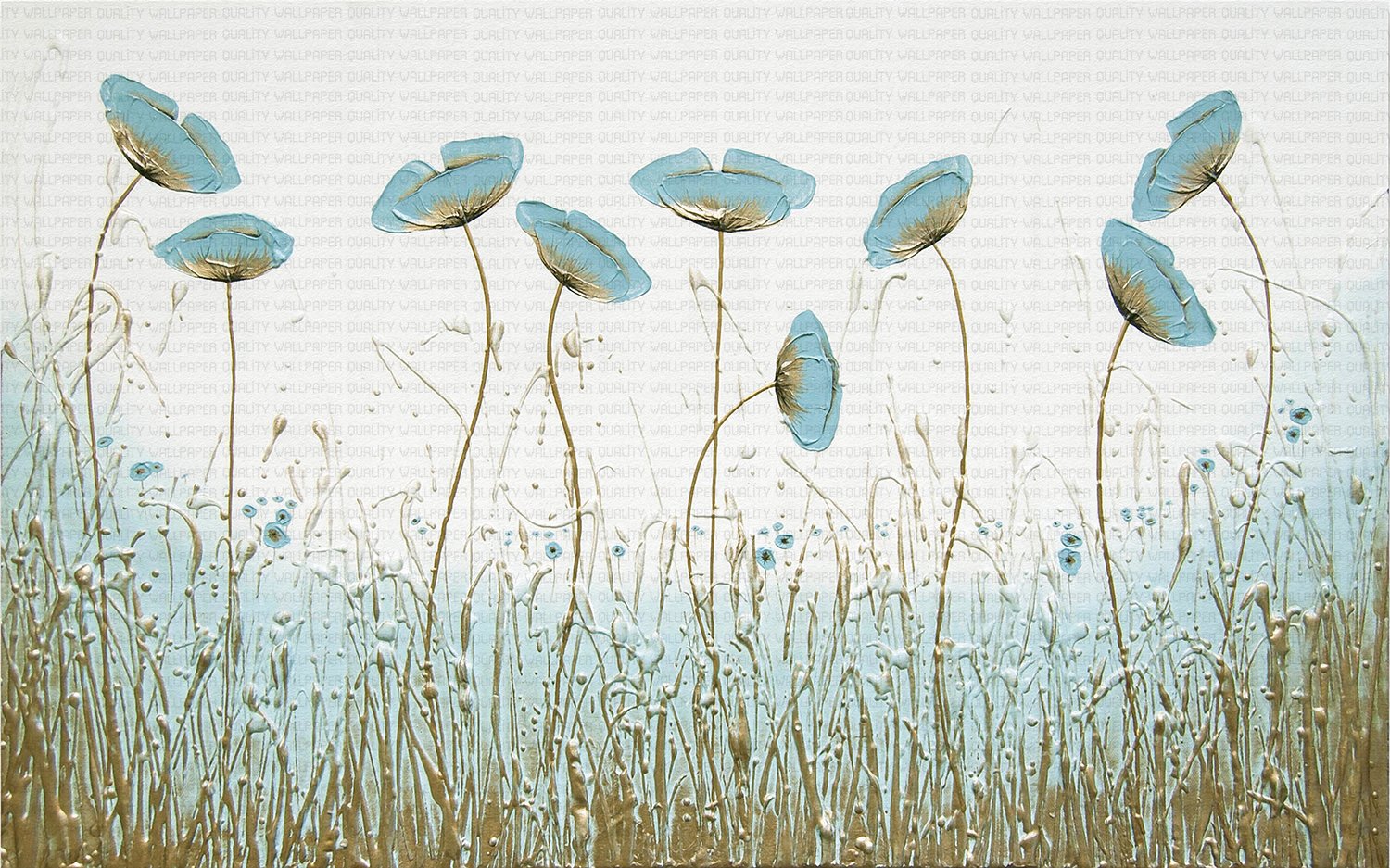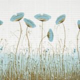 Bu tablo, dinginliği ve huzuru temsil eden mavi çiçeklerin eşsiz güzelliğini sergiliyor. Gökyüzünü andıran bu çiçekler, zarif bir şekilde dans ederken, altın rengi detaylar onlara sıcaklık ve ışıltı katıyor. Bu eser, izleyiciyi sakin bir bahçeye davet ediyor, ona huzur ve dinginlik dolu bir an yaşatıyor.