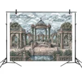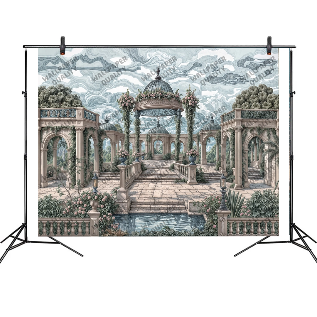 Bu tasarım, neoklasik bir bahçenin zamansız zarafetini ve dinginliğini fırça darbeleriyle tuvale taşıyor. Her bir mermer sütun, geçmişin ihtişamını fısıldarken, kemerli geçitler sonsuzluğa açılan kapılar gibi duruyor. Pembe güllerin narin dokunuşu, yeşilin ve taşın soğukluğuna sıcak bir kontrast katıyor; adeta yaşamın ve aşkın sembolü olarak yükseliyor. Gökyüzünün bulutlu, pastel tonları, izleyicide bir rüya aleminin veya dingin bir anın hissini uyandırıyor. Fırça darbeleri, detaylardaki inceliği ve genel kompozisyondaki dengeyi vurgularken, renklerin uyumu izleyicide huzur, hayranlık ve romantik bir melankoli yaratıyor. Bu görsel, izleyicinin ruhunda bir kaçış noktası sunarak, güzelliğin ve dinginliğin ebedi dansına davet ediyor.