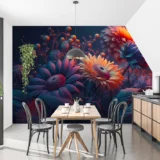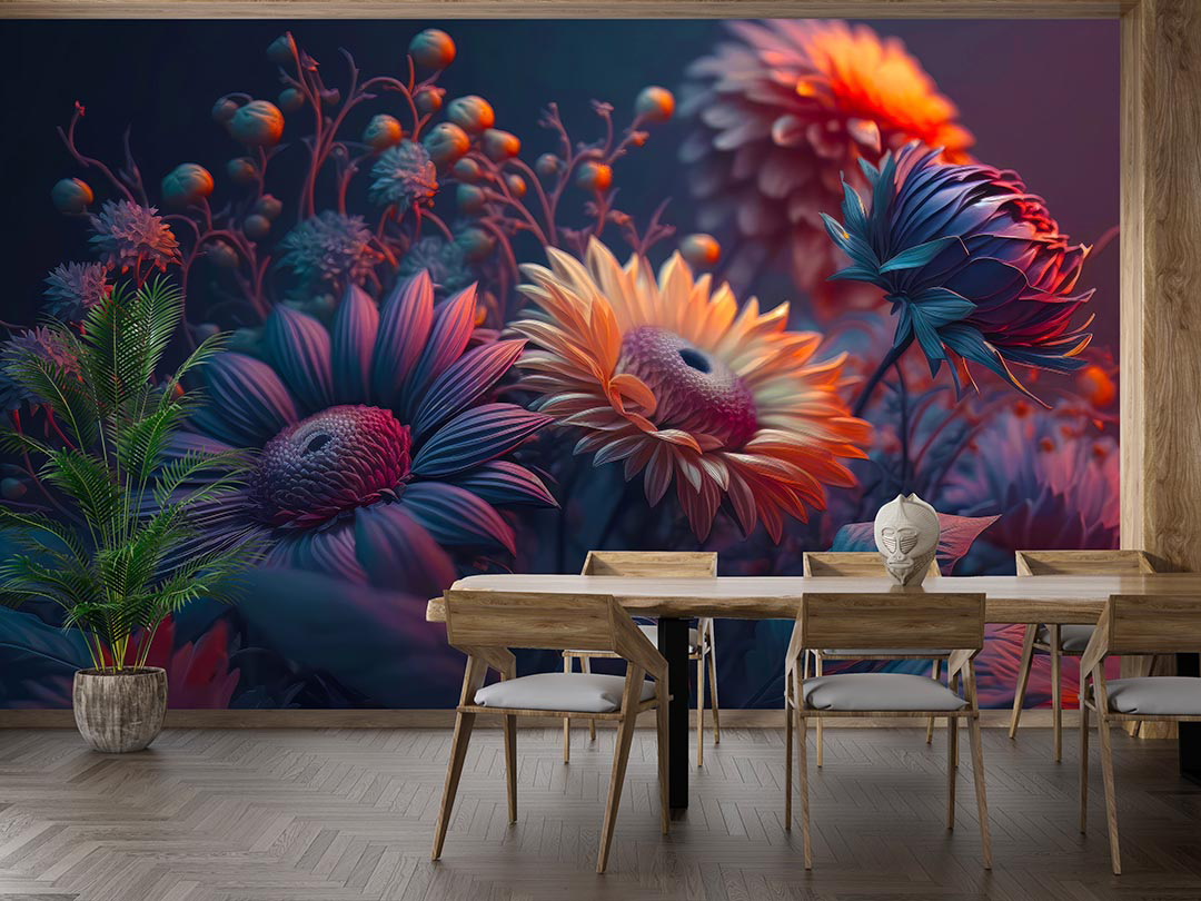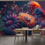 Bu tasarım, modern bir çiçek bahçesinin canlı renklerini ve dokularını bir araya getiriyor. Parlak renkler, cesur kontrastlar ve dinamik kompozisyon, enerji dolu bir atmosfer yaratıyor. Bu eser, izleyiciye neşe, canlılık ve ilham vermeyi amaçlıyor. Fırça darbeleri ve renklerin kullanımı, bu enerjik ve modern etkiyi güçlendiriyor.