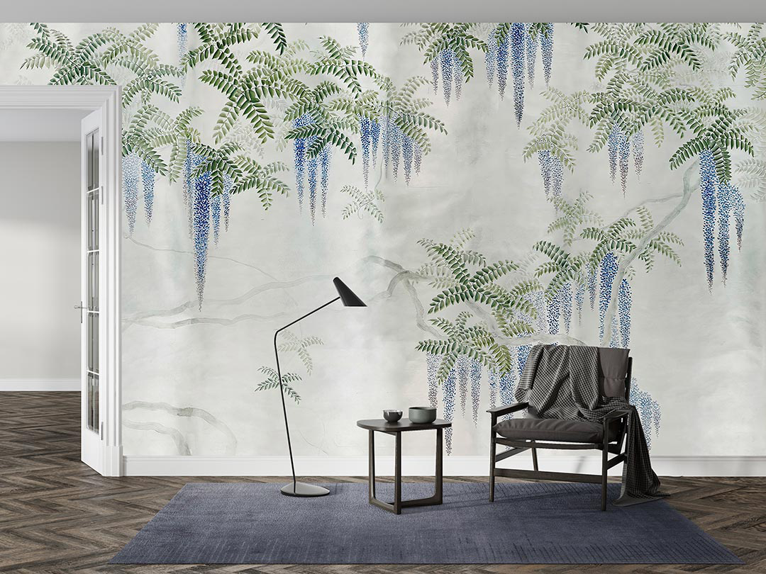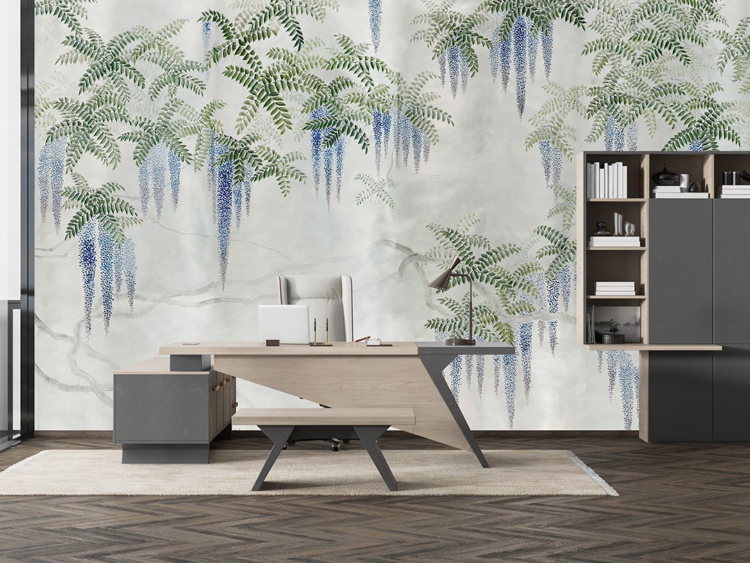 - Duvar Posteri: Salon, yatak odası veya dinlenme odası gibi mekanlara romantik ve huzurlu bir hava katar. Mor salkım deseni, duvarlara zarafet ve derinlik getirir.