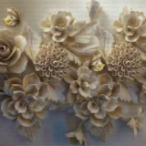 Bu zarif sanat eseri, pastel tonlardaki narin çiçeklerin huzur veren güzelliğini ve dinginliğini yansıtıyor. Kabartmalı dokusu, çiçeklere gerçekçi bir boyut kazandırırken, yumuşak renkler ortama sakin ve huzurlu bir atmosfer katıyor. Bu eser, mekanlara zarafet ve dinginlik katarken, izleyicisini rahatlatıcı bir yolculuğa çıkarıyor.