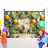Bu büyüleyici tasarım, sevimli bir filin tropik bir bahçede rengarenk balonlarla çevrili neşeli anını yakalıyor. Canlı renkler ve tropik bitkiler, sahneye neşeli ve enerjik bir hava katarken, filin sevimli duruşu izleyicilere mutluluk veriyor. Fırça darbeleri, balonların hafifliğini ve bahçenin canlılığını vurgulayarak, hayallerin ve neşenin bir araya geldiği bir dünya sunuyor.
