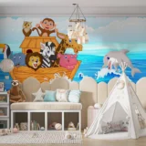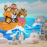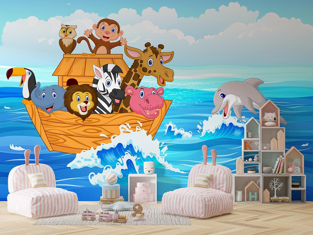 Bu tasarım, Nuh’un Gemisi’nin hikayesini neşeli ve çocuksu bir bakış açısıyla yeniden yorumluyor. Dalgalı deniz, macerayı ve yolculuğu temsil ederken, gemideki birbirinden farklı hayvanlar birlikteliğin ve çeşitliliğin güzelliğini vurguluyor. Fırça darbeleri, suyun hareketini ve hayvanların canlılığını yansıtırken, parlak ve sıcak renkler umudu, neşeyi ve yeni bir başlangıcın heyecanını iletiyor. İzleyicide, merak duygusunu, hayvan sevgisini ve zorlukların üstesinden gelme inancını uyandırır.