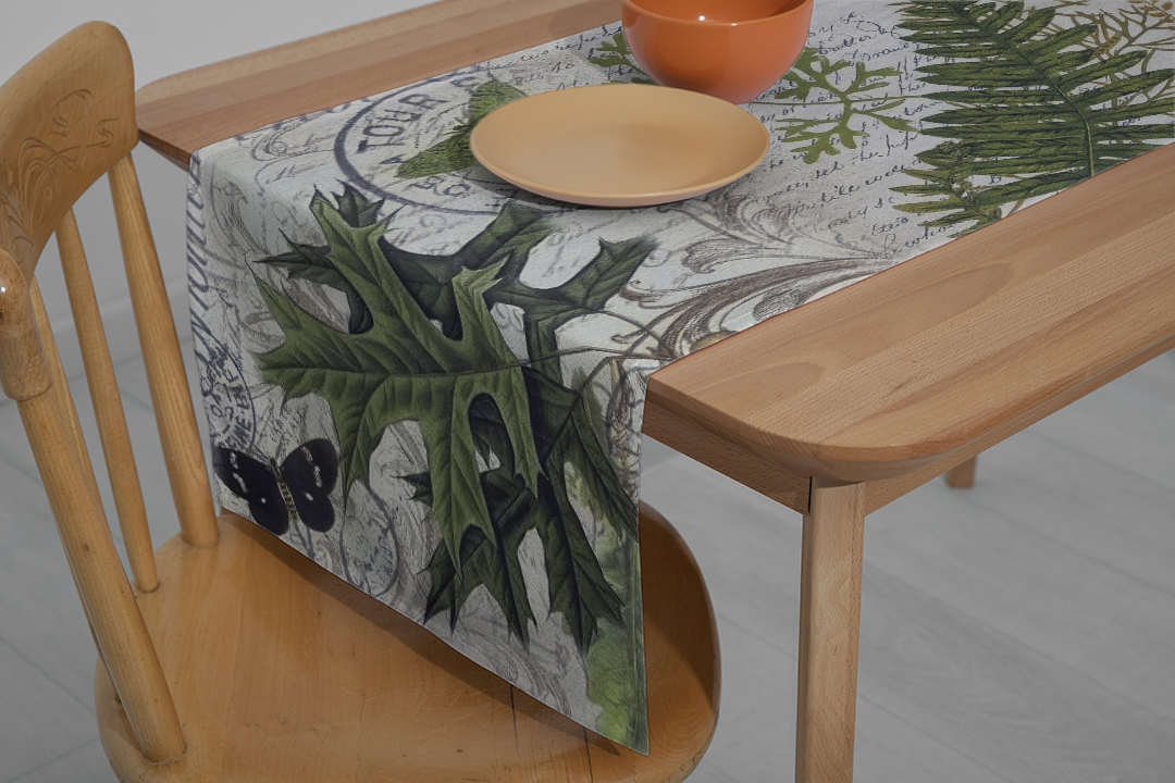 duvar posteri, masa örtüsü, runner, fon kumaşı, fon, perde, kırlent, amerikan servis, orman, bitki, hayvan, doğal, gizemli, sofistike, yeşil, kahverengi, bej, siyah, iç tasarım, ev dekorasyonu, OGD654321