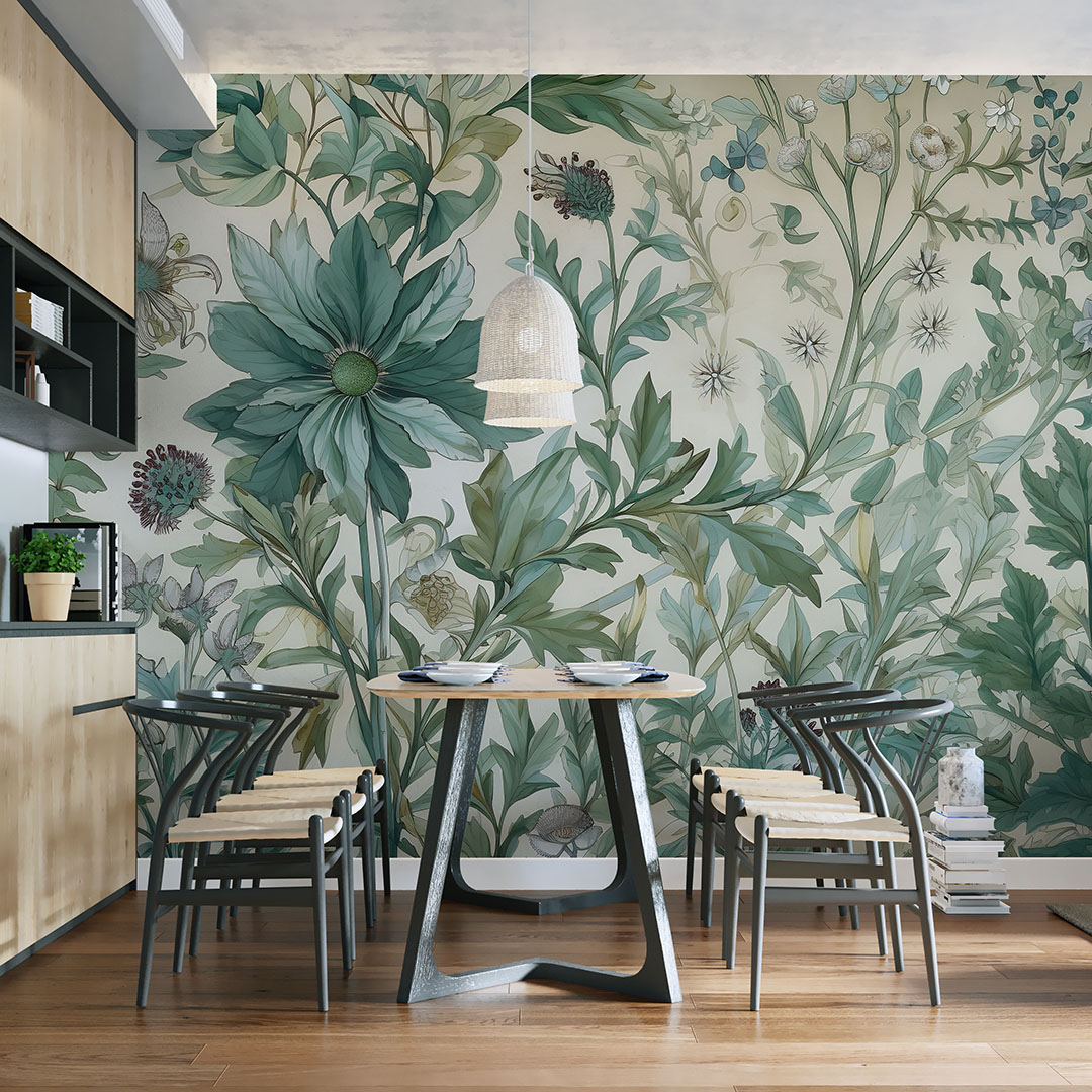 Bu tasarım, ormanın huzurlu ve büyüleyici serenadını yansıtıyor. Canlı renkler ve karmaşık desenler, doğanın ritmini ve melodisini yakalıyor. Her bir bitki ve yaprak, kendine özgü dokusu ve formuyla bir şarkı söylerken, yumuşak renkler huzur ve dinginlik hissi uyandırıyor. Bu eser, mekanlarına hem doğal hem de sanatsal bir dokunuş katmak isteyenler için tasarlandı.