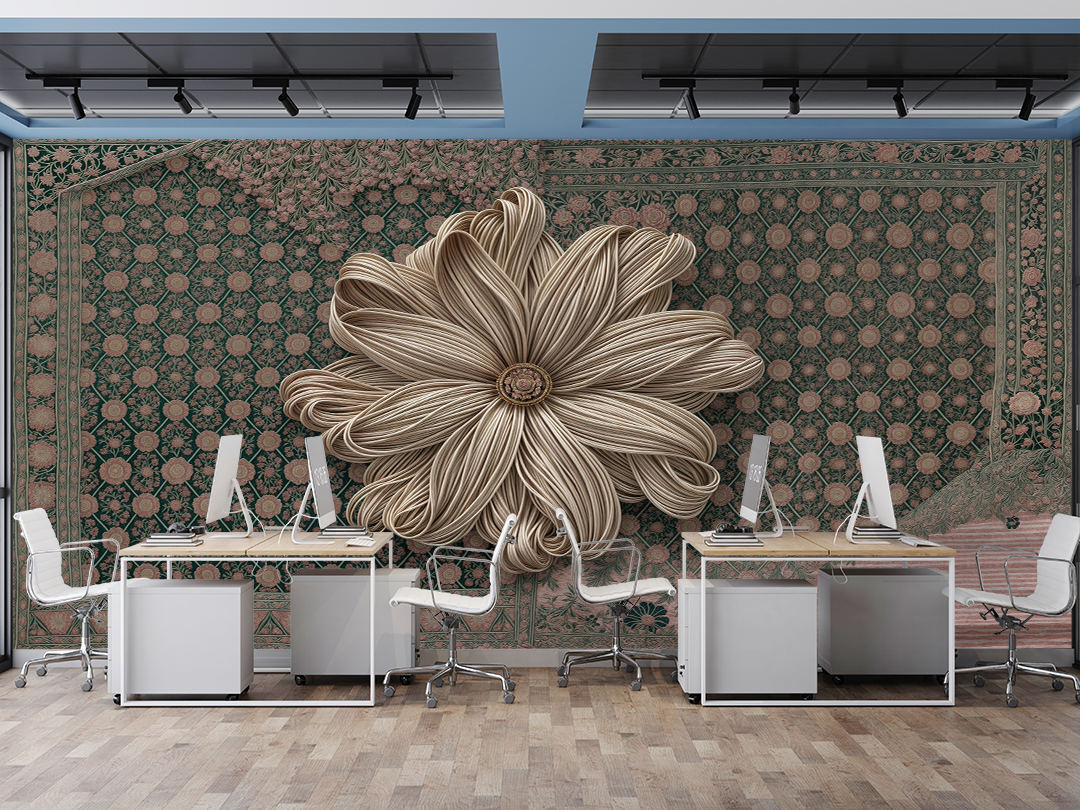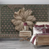 Bu benzersiz sanat eseri, etnik desenlerin zenginliğini ve çiçeklerin mistik güzelliğini bir araya getiriyor. Otantik halı desenleri üzerine yerleştirilmiş olan çiçek kompozisyonu, izleyicisini uzak diyarlara götüren bir hikaye anlatıyor. Her bir detay, farklı kültürlerin izlerini taşırken, çiçeklerin gizemli duruşu ise evrensel bir cazibe yaratıyor.