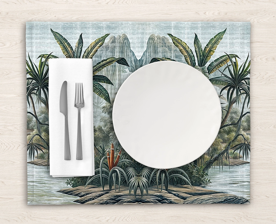 Bu tasarım, tropik bir cennetin büyüleyici güzelliğini gözler önüne seriyor. Yemyeşil palmiye yaprakları, suyun dinginliği ve bitki zenginliği, bu manzarayı adeta bir rüyaya dönüştürüyor. Her detay, tropik esintinin huzurunu ve canlılığını yansıtarak mekanınıza hem doğal bir ferahlık hem de büyüleyici bir atmosfer katıyor. Bu eser, yaşam alanlarınıza tropik bir kaçışın keyfini taşıyor.