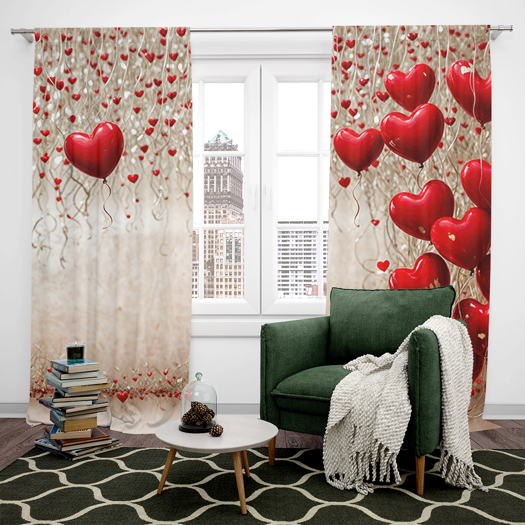 Bu tasarım, aşkın en saf ve en romantik halini, adeta bir rüyadan fırlamış gibi gözler önüne seriyor. Parlak kırmızı, kalp şeklindeki balonlar ve minik kalpler, ince, ışıltılı tellerle havada süzülerek, sevginin hafifliğini ve neşesini simgeliyor. Arka plandaki yumuşak, ışıklı doku, bu özel anın büyülü atmosferini tamamlıyor. Her bir fırça darbesi, kalplerin canlılığını, ışıkların parıltısını ve bu anın dinginliğini hissettirirken, renklerin uyumu izleyicide hem huzur hem de derin bir romantizm hissi uyandırır. Bu eser, bakan herkese kendi özel anlarını hatırlatacak, mekanlara sıcaklık, gizem ve zamansız bir güzellik katacak, adeta bir rüyadan fırlamış gibi büyülü bir his bırakacaktır.