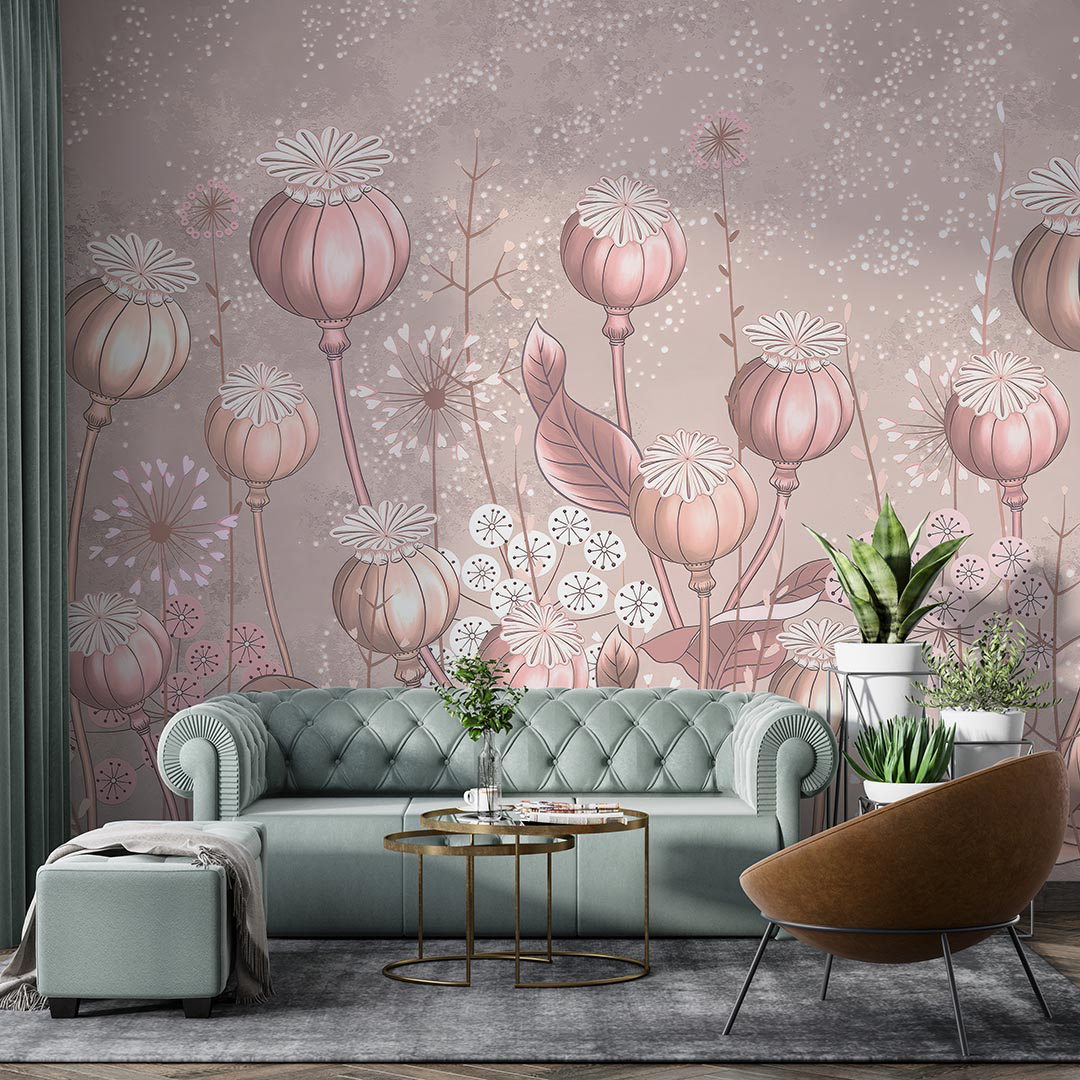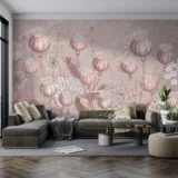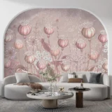 Bu tasarım, pastel renklerin huzurlu dansını ve çiçeklerin zamansız zarafetini bir araya getiriyor. Yumuşak pembe tonları, narin çiçeklerle buluşarak mekana sakin ve davetkar bir atmosfer katıyor. Her bir detay, huzurlu bir bahçenin dinginliğini ve zarafetini yansıtarak izleyiciye rüya gibi bir deneyim sunuyor. Bu eser, mekanlarına huzur ve zarafet katmak isteyenler için tasarlandı.