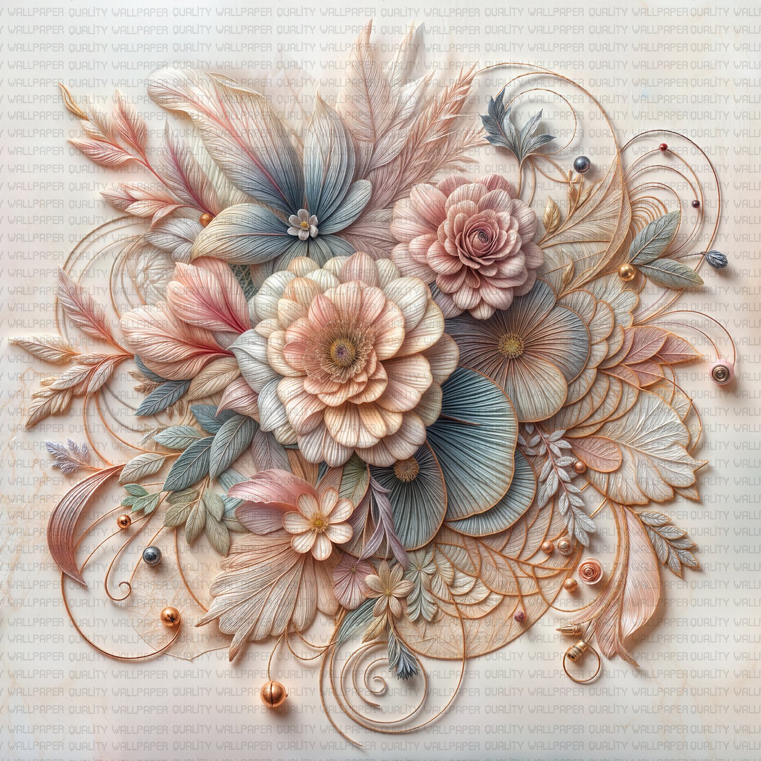 Bu tasarım, pastel renklerin huzur veren yumuşaklığıyla çiçeklerin zarafetini bir araya getiriyor. Her bir çiçek, pastel tonların sakinleştirici etkisiyle adeta bir rüya bahçesini andırıyor. Bu kompozisyon, izleyicisine dinginlik ve huzur veren bir atmosfer sunarken, pastel renklerin uyumu da mekanlara zarafet ve şıklık katıyor.