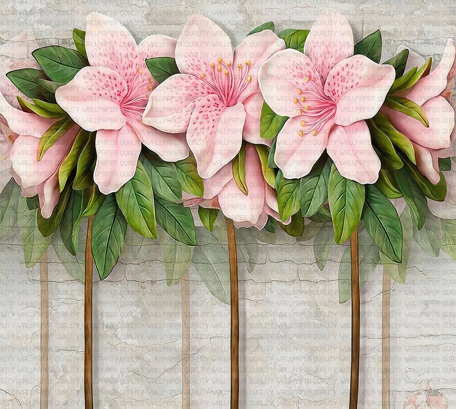 Bu görsel, pembe lilyumların dingin güzelliğini ve zarafetini vurgulayan etkileyici bir kompozisyon sunuyor. Yumuşak pembe tonları ve zarif yapraklar, huzur ve sükunet dolu bir atmosfer yaratıyor. Bu tasarım, mekanlara dinginlik ve zarafet katmak isteyenler için mükemmel bir seçimdir.