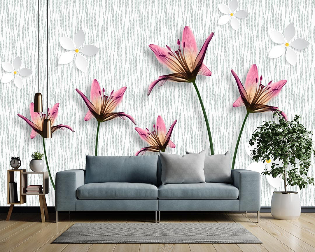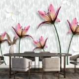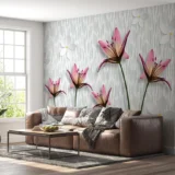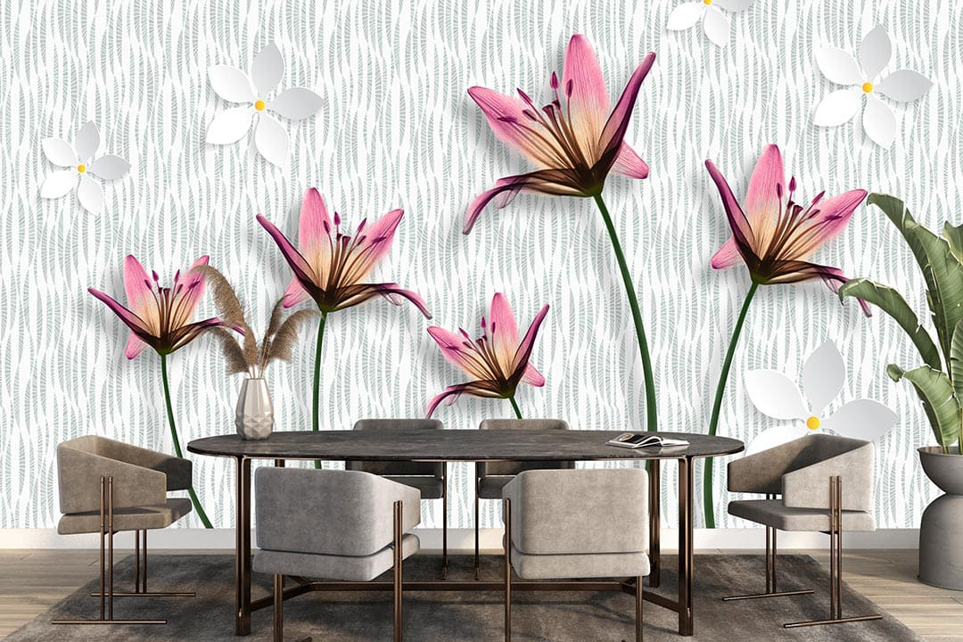 Bu tasarım, pembe ve beyazın uyumunu gözler önüne sererek, zarif bir çiçek bahçesi atmosferi yaratıyor. Pembe çiçeklerin canlılığı, beyazın saflığı ile birleşerek mekana huzurlu ve romantik bir hava katıyor. Bu eser, modern ve klasik mekanlara zarafet ve canlılık katarken, izleyicisine neşe ve hayranlık duyguları yaşatıyor.