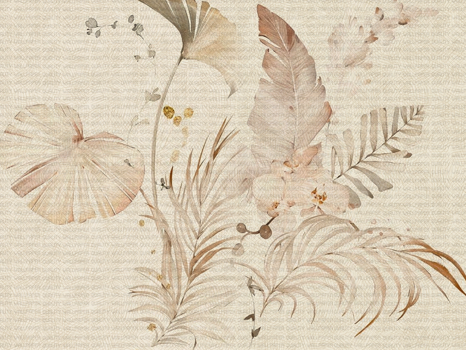 Bu tasarım, tropik bir rüyanın hafif ve huzurlu bir yorumunu sunuyor. Puslu renkler ve zarif bitki detayları, tropik bir esintinin sakinleştirici dokunuşunu anımsatıyor. Fırça darbeleri, yaprakların narinliğini ve hafif hareketini yakalayarak izleyiciye dingin ve rahatlatıcı bir atmosfer sunuyor. Bu eser, tropik doğanın huzurunu ve zarafetini mekanlarına taşımak isteyenler için tasarlandı.
