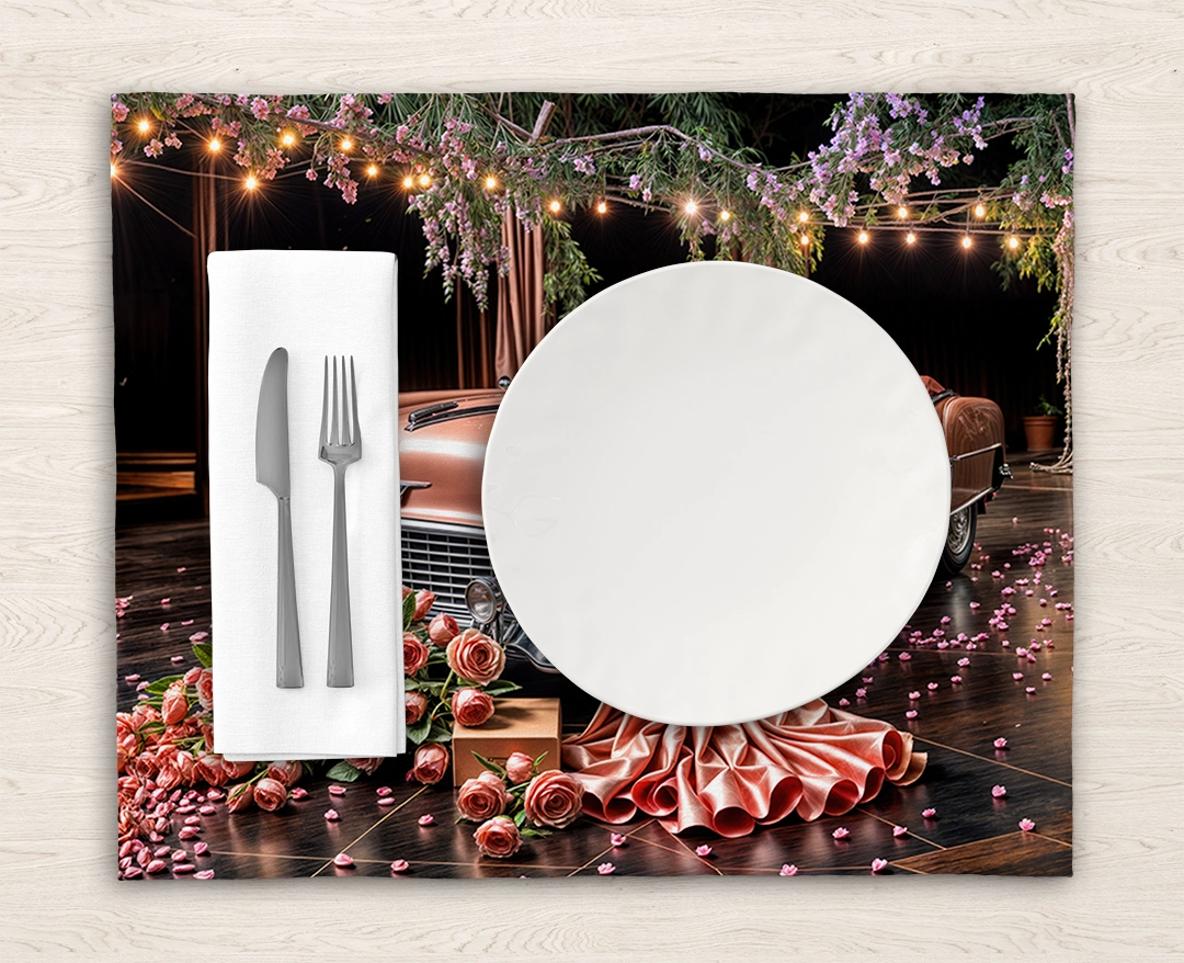 Bu tasarım, geçmişin zarafeti ile günümüzün romantizmini bir araya getiriyor. Parlak şeftali rengi vintage otomobil, sadece bir araç değil, aynı zamanda yaşanmış güzel anıların ve geleceğe taşınacak hayallerin bir simgesi. Üzerini süsleyen taze güller ve dökülen yapraklar, tutkunun ve kutlamanın izlerini taşıyor. Her bir fırça darbesi, o büyülü anın heyecanını, renklerin dansı ise neşeyi ve umudu yansıtıyor. Bu eser, izleyicide nostaljik bir gülümseme, romantik bir iç çekiş ve “sonsuza dek mutlu” masallarının sıcaklığını uyandıracak. Mekanlara sofistike bir dokunuş katarken, bakan herkese kendi özel hikayelerini hatırlatacak.
