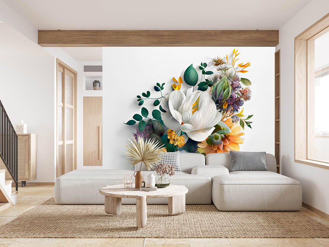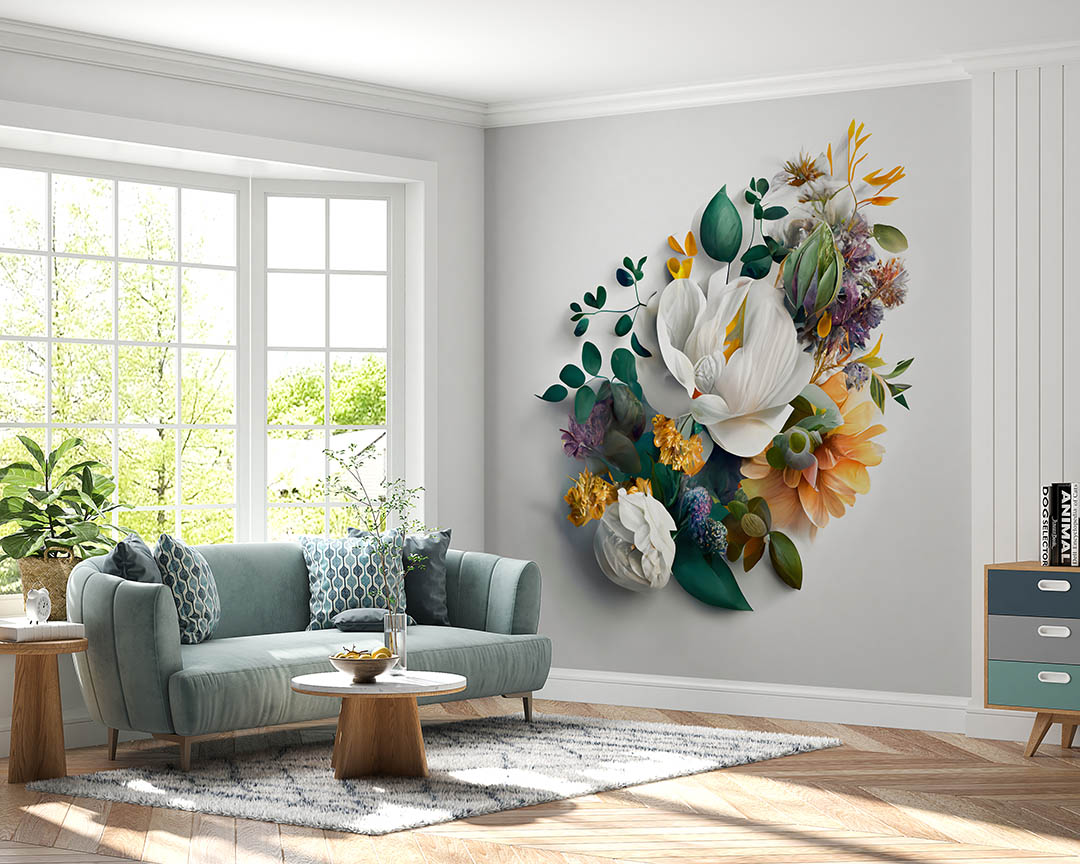 Bu zarif sanat eseri, pastel renklerin huzur veren tonlarıyla bezenmiş kabartmalı bir çiçek buketini sunuyor. Her bir çiçek, romantizmi ve zarafeti temsil ederken, kabartmalı dokular tasarıma derinlik ve boyut katıyor. Bu eser, mekanlara sakinlik ve romantik bir atmosfer getirirken, pastel renklerin yumuşaklığını ve çiçeklerin zarafetini bir araya getiriyor.