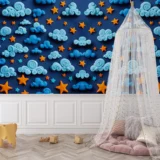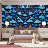 Bu büyüleyici tasarım, gece gökyüzünün mistik güzelliğini gözler önüne seriyor. 3D bulutların yumuşak kıvrımları ve yıldızların parıltısı, izleyiciyi rüya gibi bir yolculuğa çıkarıyor. Derin mavi tonları ve sıcak yıldız ışığı, huzur ve hayranlık duygularını bir araya getiriyor. Bu eser, gökyüzünün sonsuzluğunu ve düşlerin büyüsünü kutlayarak, bakanlara ilham verici bir deneyim sunuyor.
