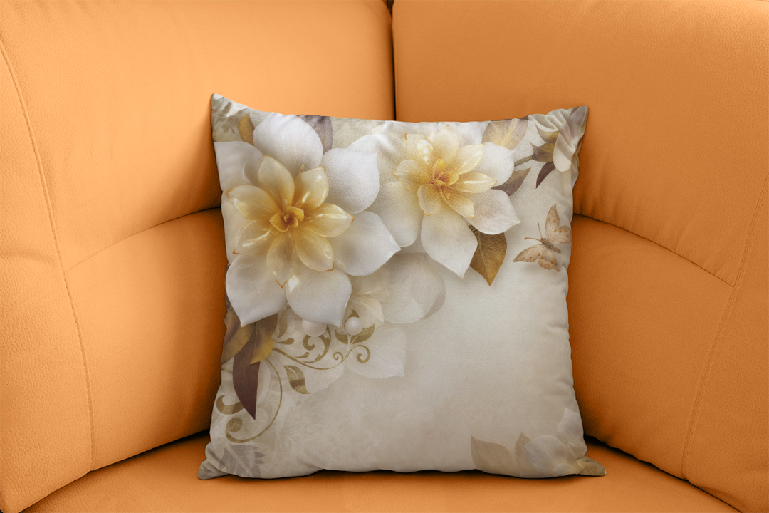 Bu büyüleyici tasarım, pastel renklerin huzur veren zarafetini altın dokunuşların ışıltısıyla bir araya getiriyor. Krem, bej ve şeftali tonlarındaki çiçekler, altın detaylarla süslenerek mekana sıcak, davetkar ve lüks bir atmosfer katıyor. Kelebeklerin hafif dokunuşu, tasarıma canlılık ve hareket katarken, desenli arka plan zengin bir doku sunuyor. Bu özel tasarım, izleyicisine rüya gibi bir bahçede huzurlu bir yolculuk hissi yaşatıyor.