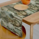 • Runner: Uzun bir masanın ortasına yerleştirildiğinde, tropik bitkilerin huzurlu desenlerini sergiler. Yemeklerinize dingin ve zarif bir dokunuş katar.