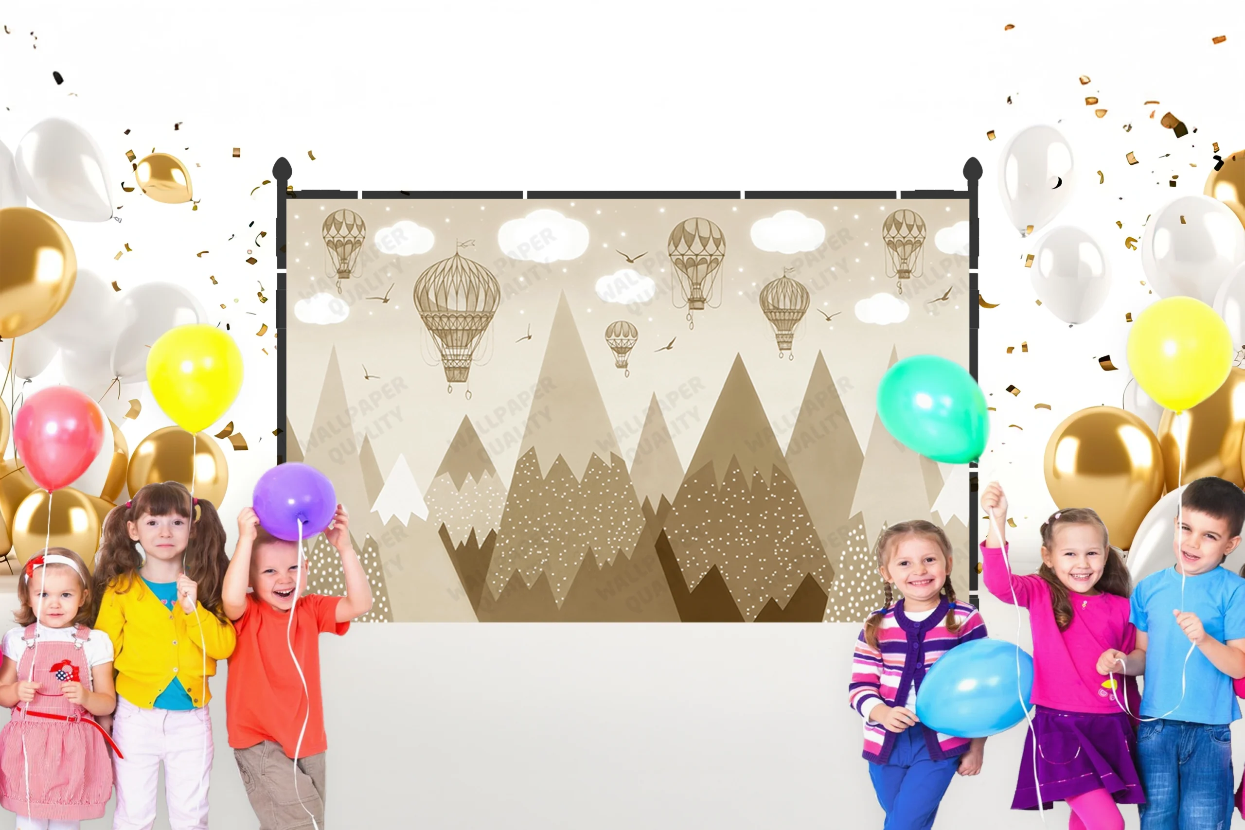 Be the first to review “Sepya Tonlarında Yükselen Balonlar Fon Kumaş”