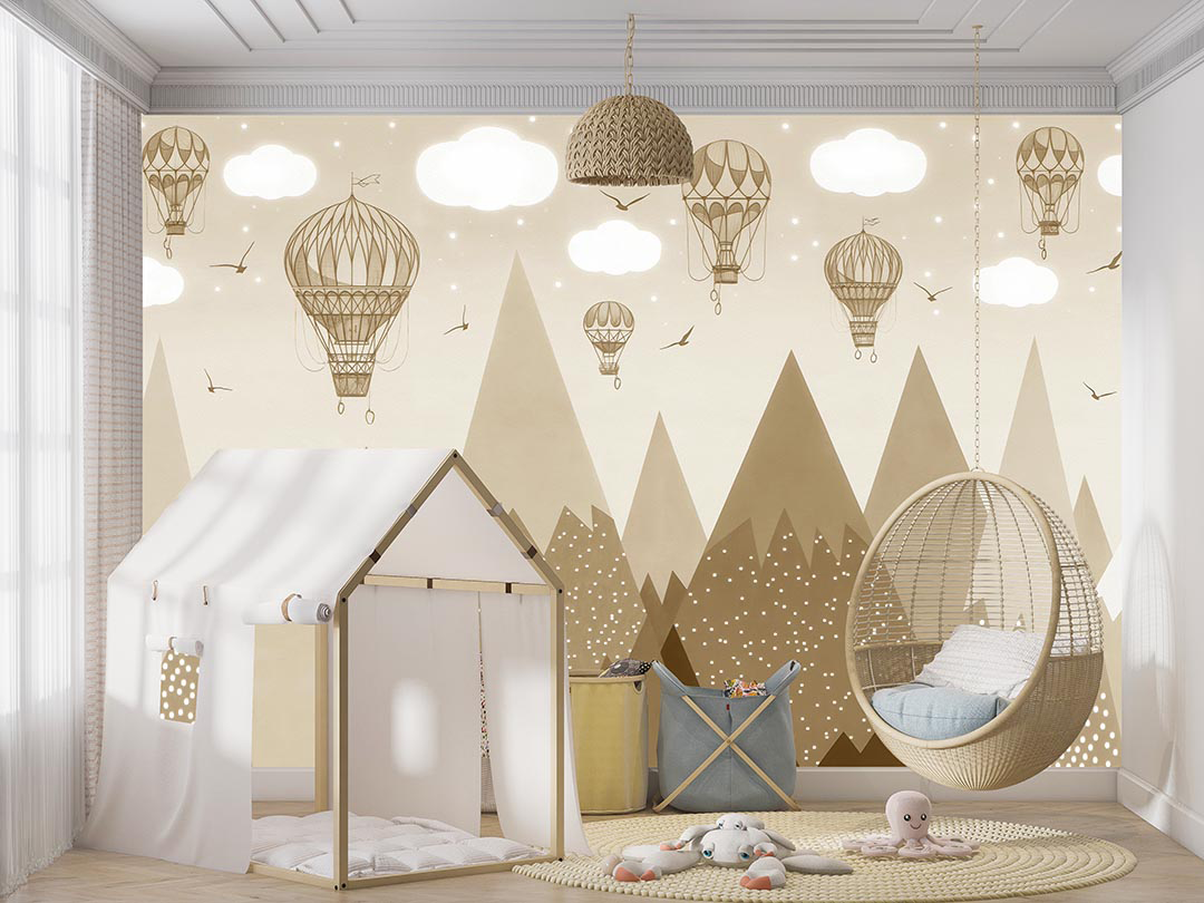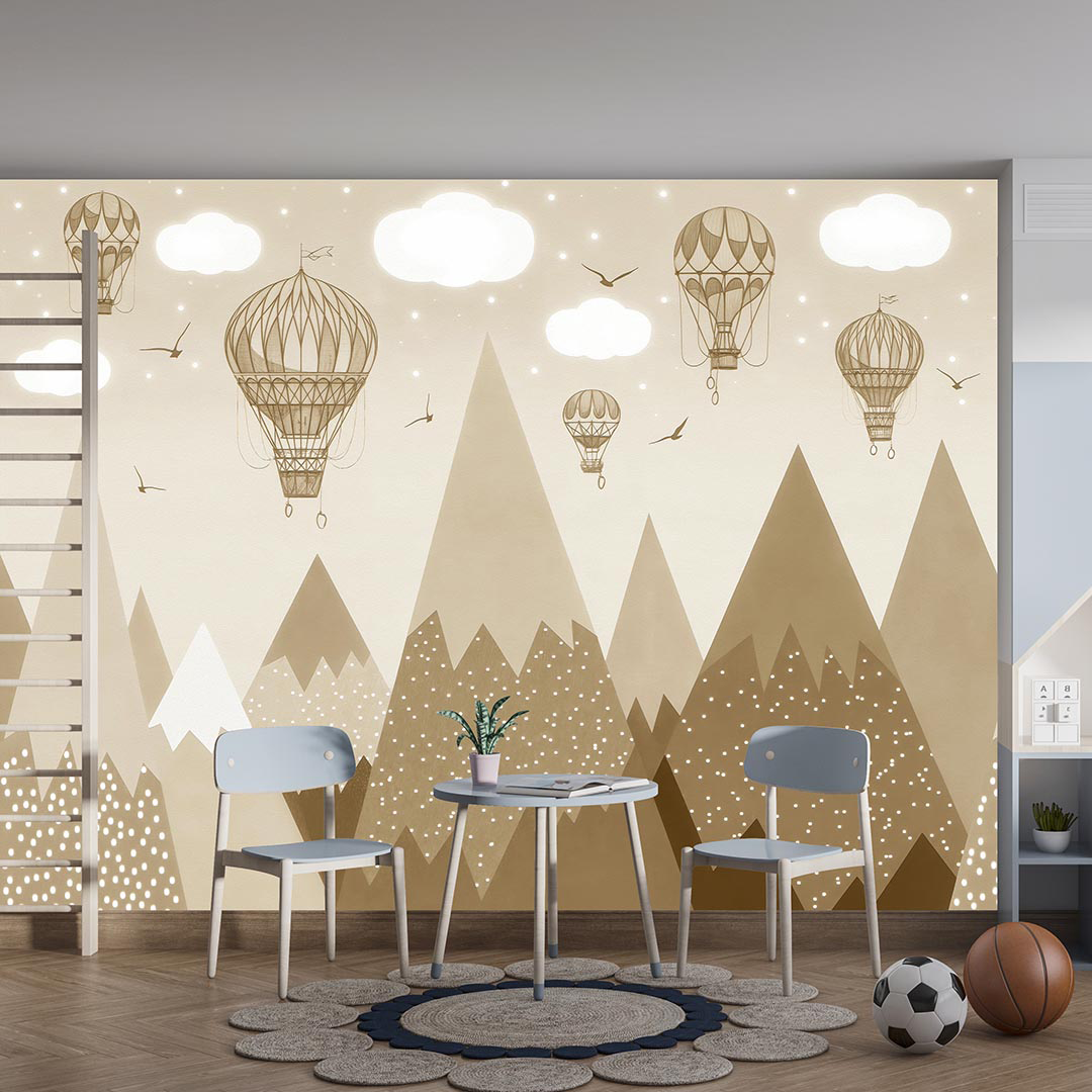 Bu tasarım, geçmişin sıcaklığını ve keşfin heyecanını fısıldıyor. Sepyanın yumuşak tonları, hayal gücünü harekete geçiren bir atmosfer yaratıyor. Gökyüzünde süzülen zarif sıcak hava balonları, bilinmeyene doğru yapılan nostaljik yolculukları simgeliyor. Altlarında yükselen gizemli dağlar, keşfedilmeyi bekleyen uzak diyarları çağrıştırıyor. Gökyüzünde özgürce kanat çırpan kuşlar ise hafifliği ve maceraperest ruhu temsil ediyor. Bu görsel, izleyicisini sakin ve düşünceli bir yolculuğa çıkarırken, içindeki keşif arzusunu canlandırıyor.