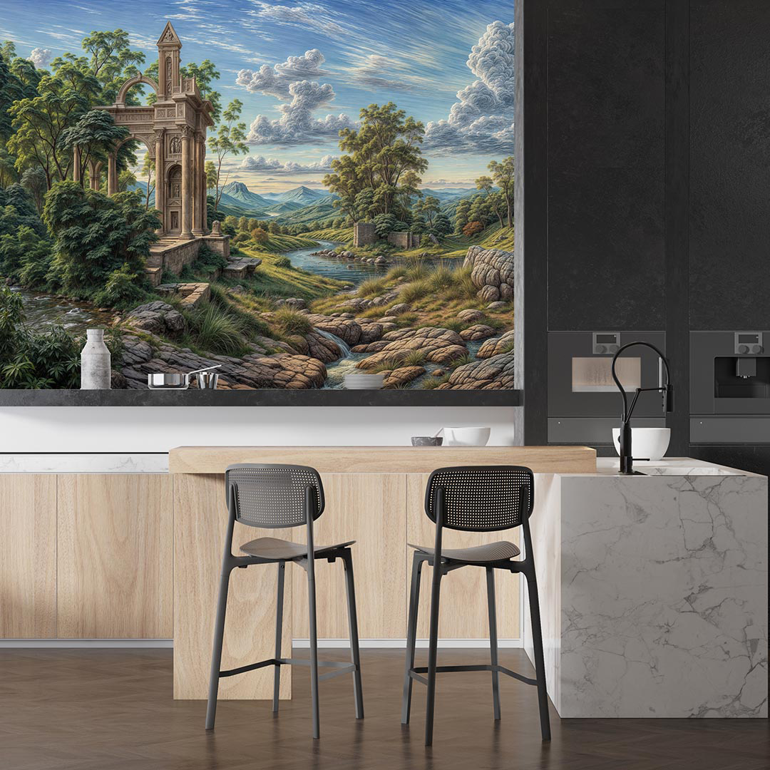 Bu tasarım, Servandoni’nin hayranlık uyandıran üslubuyla, doğanın ve antik mimarinin büyüleyici birleşimini fırça darbeleriyle tuvale taşıyor. Her renk, yemyeşil vadilerin canlılığını, tarihi tapınak kalıntılarının görkemini ve berrak suların dingin akışını anlatıyor. Gökyüzündeki bulutlar ve uzaklardaki dağlar, izleyicide derin bir huzur, hayranlık ve zamanın ötesine bir yolculuk hissi uyandırıyor. Bu eser, evinizde dingin, ilham verici ve zamansız bir atmosfer yaratacak.