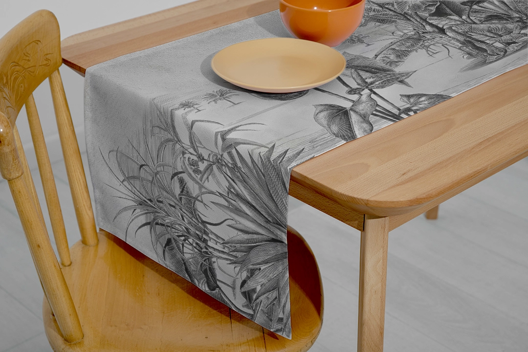 • Runner: Uzun bir masanın ortasına yerleştirildiğinde, siyah beyaz yaprakların ahenkli desenlerini sergiler. Yemeklerinize hem görsel bir şölen hem de şiirsel bir zarafet katar.