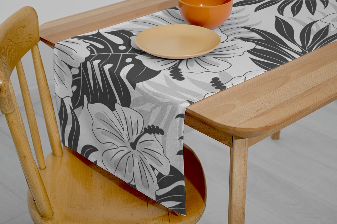 • Runner: Uzun bir masanın ortasına yerleştirildiğinde, siyah ve beyaz yaprakların desenlerini sergiler. Yemeklerinize hem görsel bir şölen hem de modern bir zarafet katar.