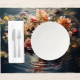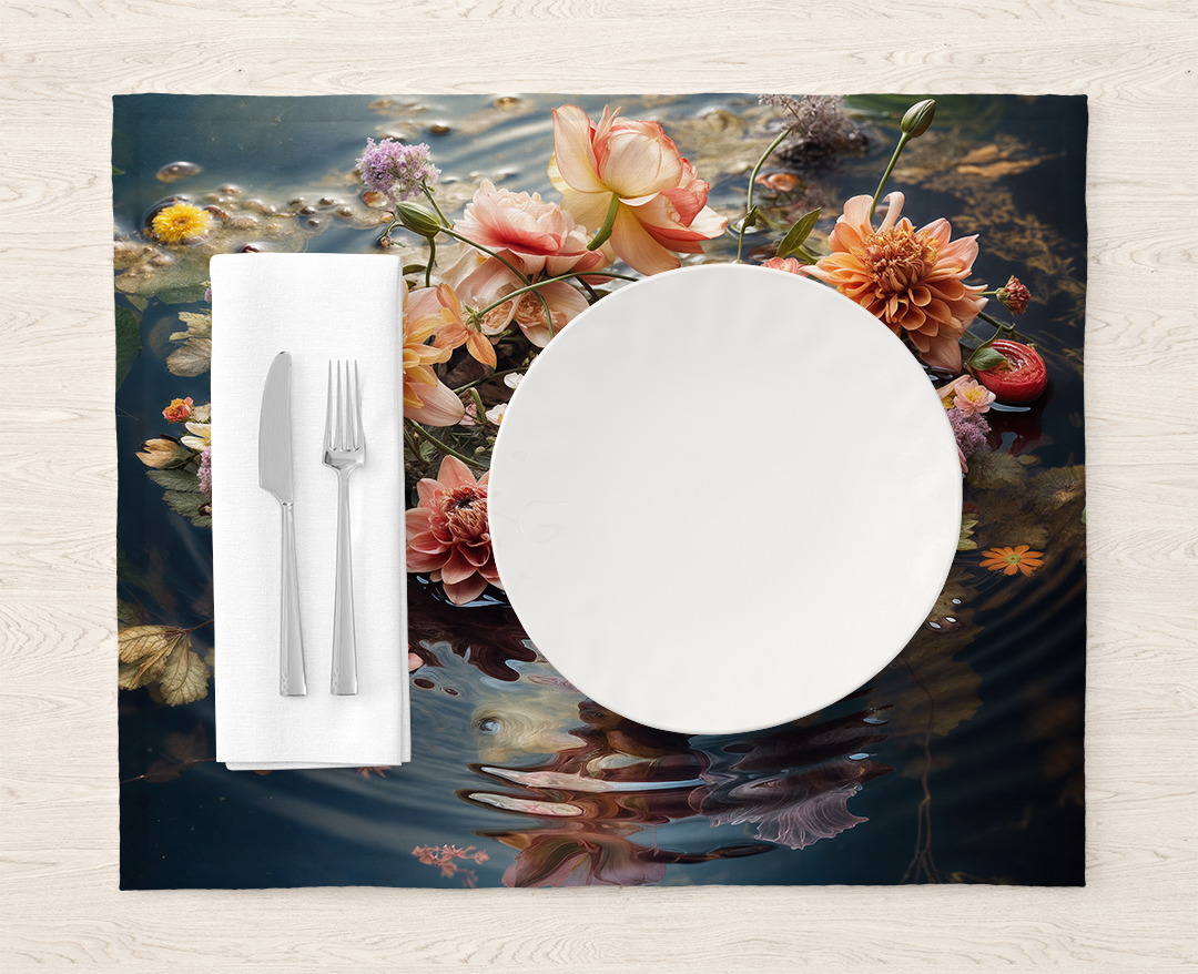Bu tasarım, suyun dinginliği ile çiçeklerin canlılığını bir araya getiriyor. Yansıyan çiçekler, suyun üzerinde dans edercesine bir görüntü oluştururken, renklerin ve ışığın uyumu izleyiciyi büyülü bir dünyaya davet ediyor. Bu eser, doğanın huzur veren güzelliğini ve suyun yansımalarındaki gizemi bir araya getirerek mekana sakinlik ve zarafet katıyor.