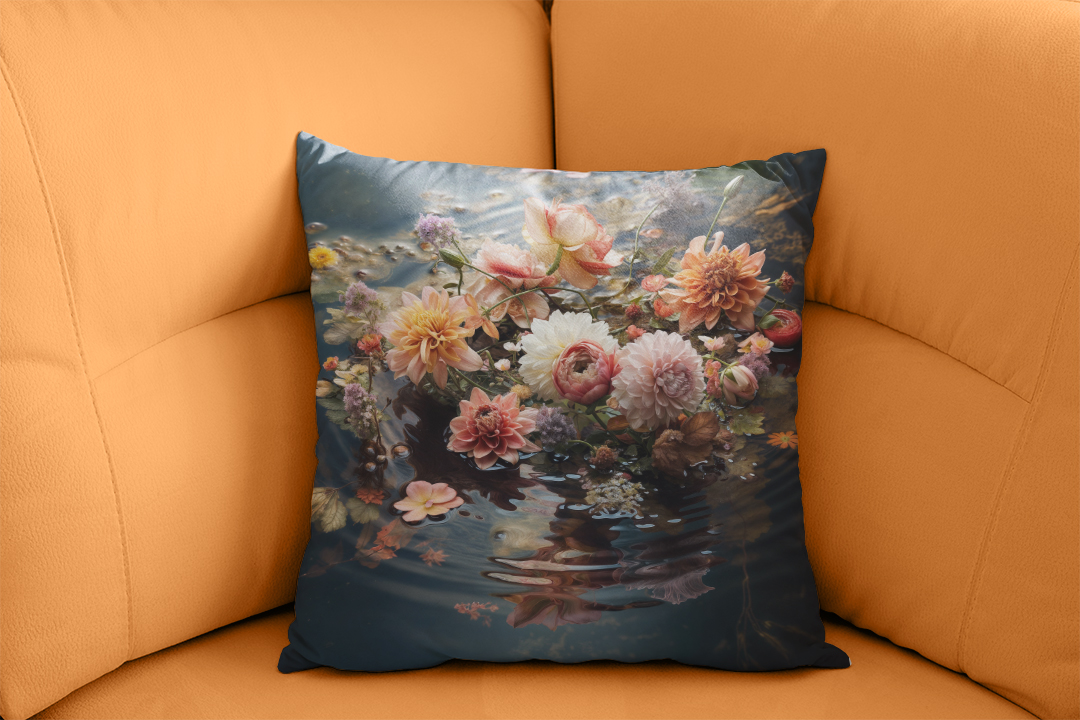 Bu tasarım, suyun dinginliği ile çiçeklerin canlılığını bir araya getiriyor. Yansıyan çiçekler, suyun üzerinde dans edercesine bir görüntü oluştururken, renklerin ve ışığın uyumu izleyiciyi büyülü bir dünyaya davet ediyor. Bu eser, doğanın huzur veren güzelliğini ve suyun yansımalarındaki gizemi bir araya getirerek mekana sakinlik ve zarafet katıyor.