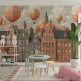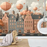 - Duvar Posteri: Oturma odalarında, yatak odalarında, çalışma alanlarında veya antrelerde kullanıldığında, mekana huzurlu, nostaljik ve sanatsal bir atmosfer katar. Şehir manzarası ve sıcak hava balonları, odanın genel ambiyansını zenginleştirir.