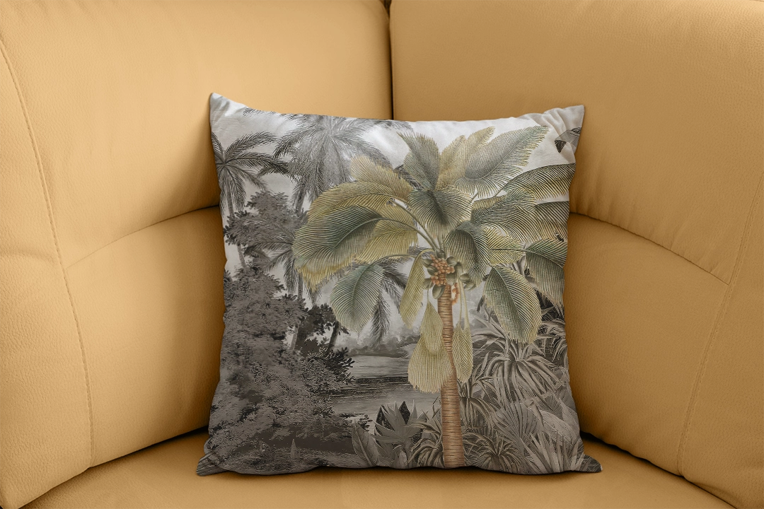 Bu tasarım, tropik bir ormanın gizemli ve büyüleyici atmosferini yansıtıyor. Yemyeşil palmiye ağaçları, derin gölge oyunları ve zengin yeşil tonları, izleyiciyi tropikal ormanın kalbine götürüyor. Her detay, tropik ormanın gizemini ve büyüleyici atmosferini yansıtarak mekanınıza hem doğal bir zarafet hem de egzotik bir cazibe katıyor. Bu eser, yaşam alanlarınıza tropik bir ormanın kapılarını aralıyor.