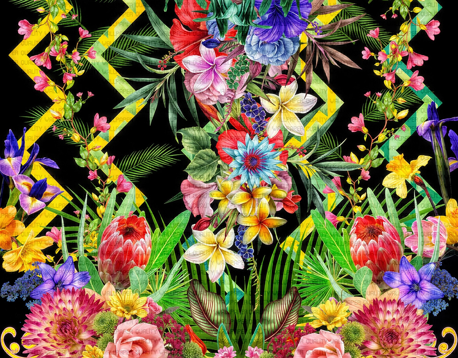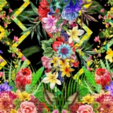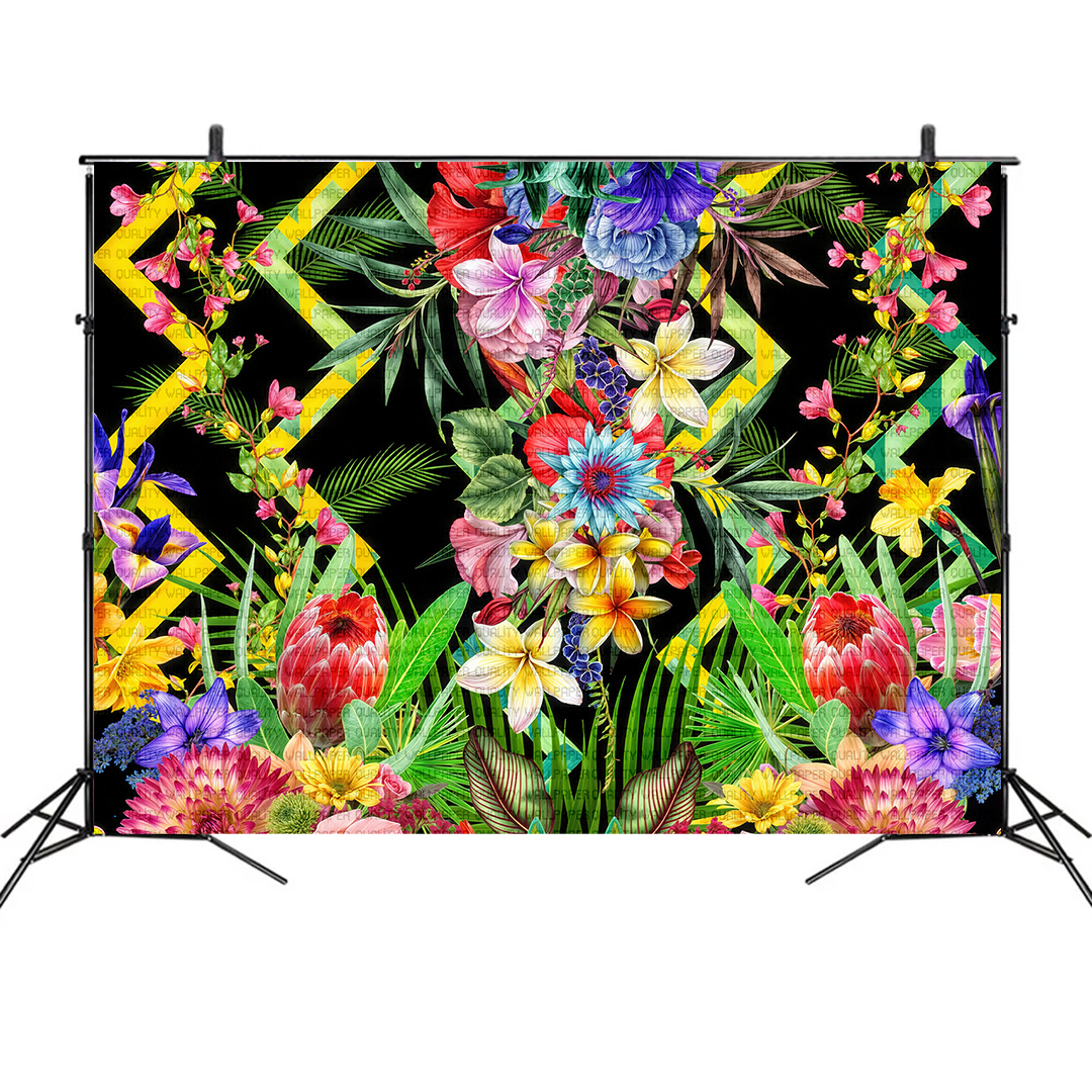 Bu tasarım, tropik bir baharın canlı renklerini ve enerjisini yansıtıyor. Birbirinden farklı çiçeklerin ve yaprakların uyumu, izleyiciye tropik bir cennetin içindeymiş hissini veriyor. Renklerin canlılığı ve desenlerin karmaşıklığı, bu tasarımı her mekanda dikkat çekici bir hale getiriyor.