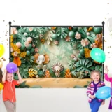 Bu sevimli tasarım, tropik bir bahçede bir araya gelen bir fil ve aslan yavrusunun dostluğunu anlatıyor. Canlı renkler ve yemyeşil bitkiler, sahneye neşeli ve sıcak bir hava katıyor. Fırça darbeleri, hayvanların sevimli ifadelerini ve bahçenin canlı detaylarını vurgularken, izleyicilere keyifli bir hikaye sunuyor. Bu eser, dostluğun ve doğanın güzelliğini bir araya getirerek pozitif bir atmosfer yaratıyor.