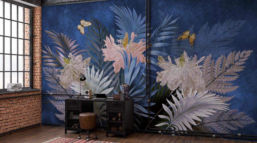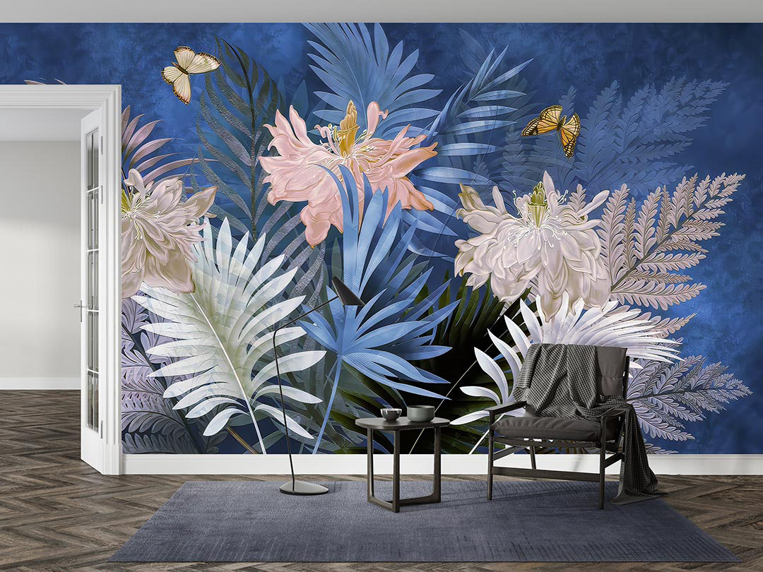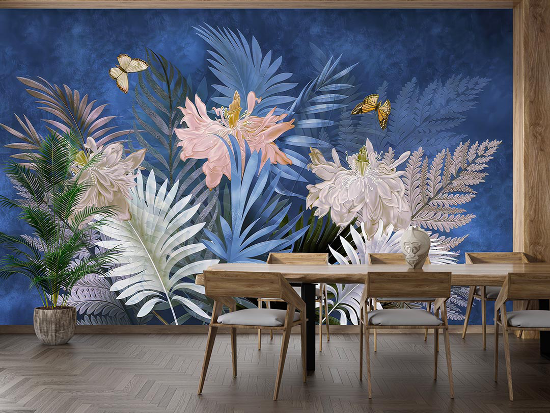 Bu tasarım, tropik bir bahçenin büyüleyici güzelliğini ve canlılığını yansıtır. Zarif çiçekler ve yemyeşil yapraklar, ormanın gizemli ve davetkar atmosferini temsil eder. Fırça darbeleri, bitkilerin dokusunu, renklerin canlılığını ve bahçenin hareketli enerjisini yakalar. Bu eser, izleyiciyi tropik bir rüyaya davet ederek, doğanın huzur veren senfonisini ve renklerini kutlar.