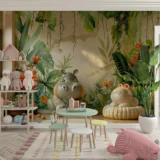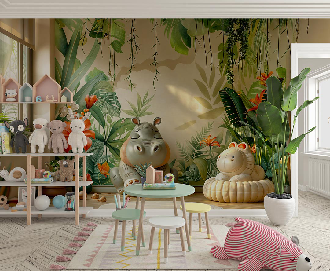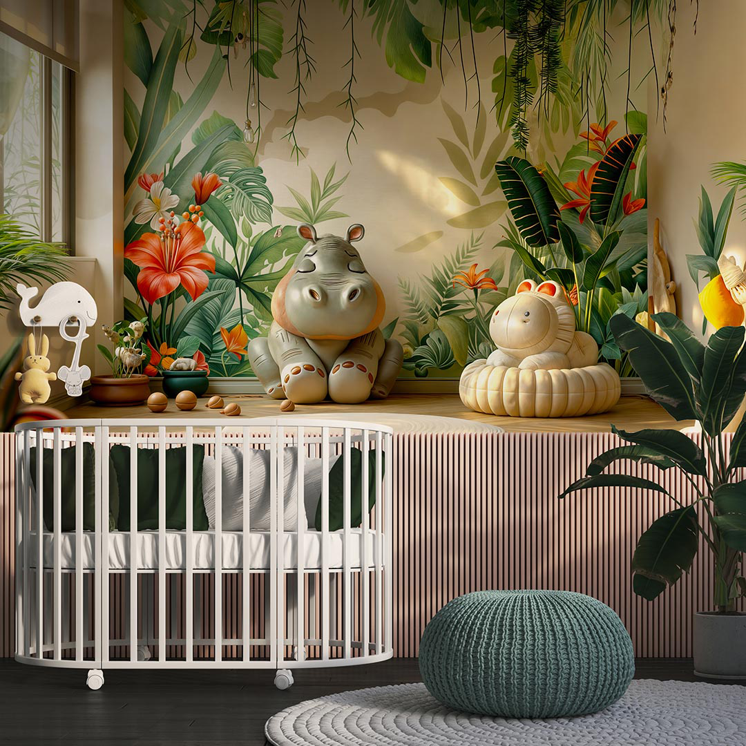 Bu büyüleyici tasarım, tropik bir bahçenin ortasında neşeyle oynayan bir su aygırını tasvir ediyor. Yemyeşil bitkiler ve canlı çiçekler arasında su aygırının keyifli hali, izleyicilere huzurlu ve mutlu bir an sunuyor. Fırça darbeleri, su aygırının sevimli ifadesini ve tropik bitkilerin canlı dokusunu vurgularken, renkler ortama sıcaklık ve canlılık katıyor. Bu eser, doğanın huzurlu bir köşesinde neşeli bir serüveni anlatarak izleyicilere keyifli bir deneyim yaşatıyor.