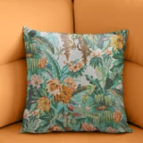 Bu tasarım, tropik bir bahçenin canlı renklerini ve zengin dokusunu bir araya getiriyor. Yeşil yapraklar arasında saklanan turuncu ve sarı çiçekler, egzotik bir atmosfer yaratıyor. Bu desen, doğanın enerjisini ve çeşitliliğini yansıtan bir tablo sunuyor. Tropik esintileri ve renkleri ile mekanlara sıcaklık ve canlılık katıyor.
