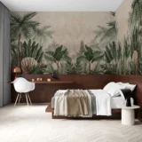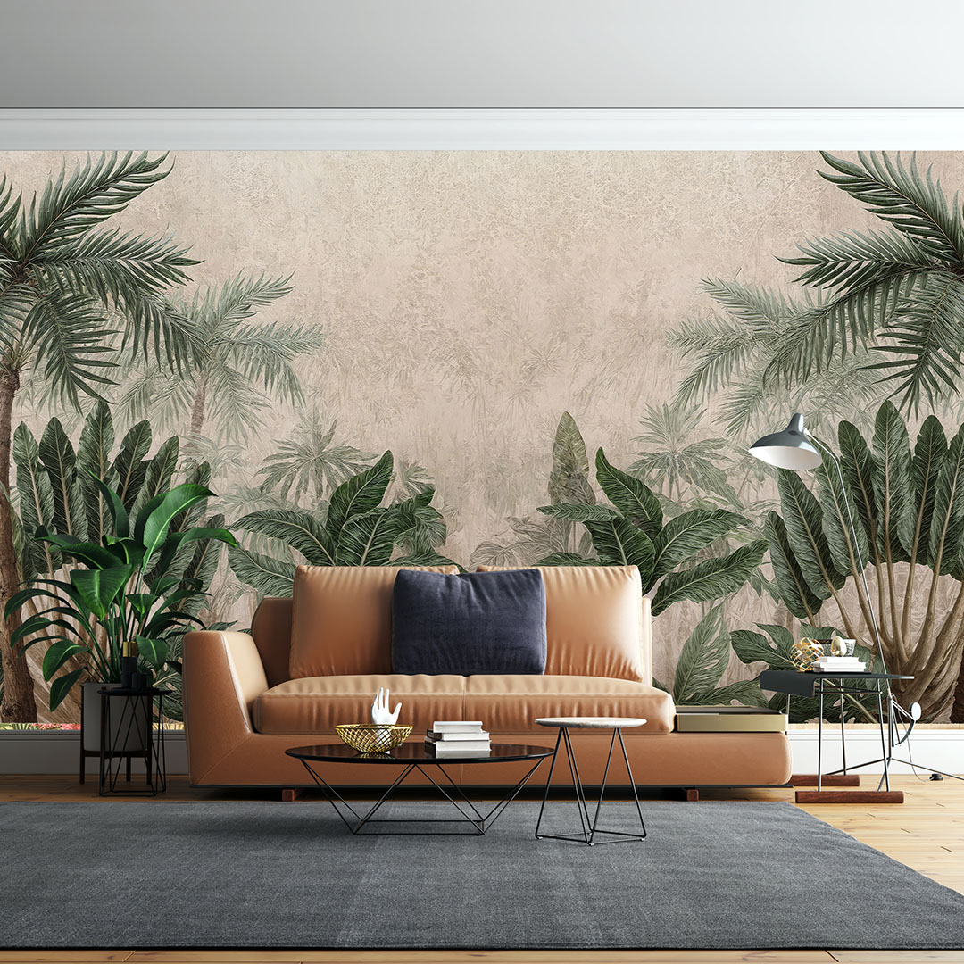 Bu tasarım, tropik bir ormanın gizemli ve büyüleyici atmosferini yansıtıyor. Yemyeşil palmiye ağaçları, derin gölge oyunları ve zengin yeşil tonları, izleyiciyi tropikal ormanın kalbine götürüyor. Her detay, tropik ormanın gizemini ve büyüleyici atmosferini yansıtarak mekanınıza hem doğal bir zarafet hem de egzotik bir cazibe katıyor. Bu eser, yaşam alanlarınıza tropik bir ormanın kapılarını aralıyor.