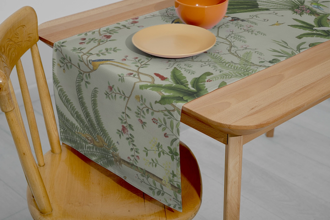 • Runner: Uzun bir masanın ortasına yerleştirildiğinde, tropik ormanın renklerini ve desenlerini yansıtır. Yemeklerinize doğal bir zarafet ve canlılık katar.