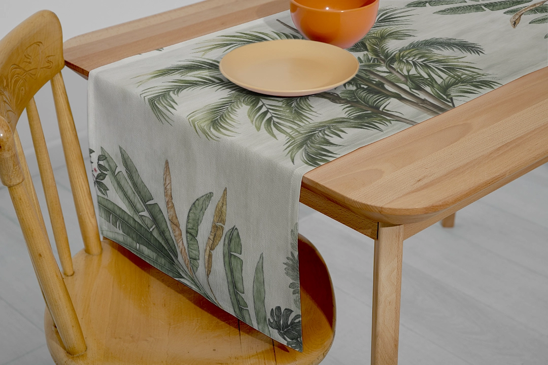 - Runner: Uzun bir masanın ortasına yerleştirildiğinde, yeşil yaprakların desenlerini sergiler. Yemeklerinize hem görsel bir şölen hem de doğal bir zarafet katar.