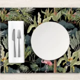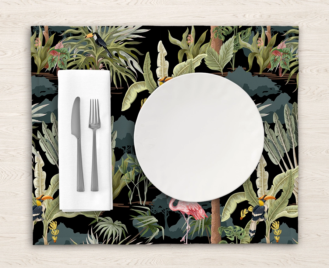 • Amerikan Servis: Yemek masasında kullanıldığında, her bir öğünü tropik bir şölene dönüştürür. Ormanın canlı renkleri ve desenleri, yemeklerinizi daha keyifli hale getirir.