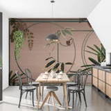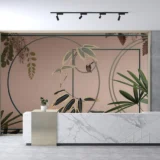 Bu tasarım, tropik yaprakların canlılığını ve enerjisini geometrik çizgilerin modernliğiyle bir araya getirerek dinamik ve çağdaş bir atmosfer yaratıyor. Yaprakların zarif kıvrımları ve canlı renkleri, geometrik çizgilerin düzeniyle buluşarak hem doğanın hareketliliğini hem de modern sanatın estetiğini yansıtıyor. Bu eser, mekanlara enerji, hareket ve sofistike bir hava katıyor.