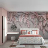 Bu tasarım, tropik yaprakların pastel tonlardaki zarafetini ve huzurunu yansıtıyor. Pembe ve bej renklerin yumuşak geçişleri, izleyiciye sakinlik ve dinginlik hissi veriyor. Yaprakların hafif dokusu ve zarif kıvrımları, tropik bir bahçenin huzurlu atmosferini evinize taşıyor. Bu duvar kağıdı, mekanınıza sıcaklık, zarafet ve rahatlatıcı bir etki katarken, aynı zamanda modern ve şık bir görünüm sunuyor.
