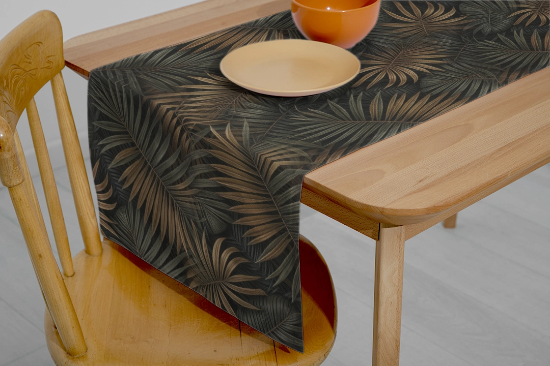 - Runner: Uzun bir masanın ortasına yerleştirildiğinde, koyu renkli yaprakların desenlerini sergiler. Yemeklerinize hem görsel bir şölen hem de doğal bir şıklık katar.