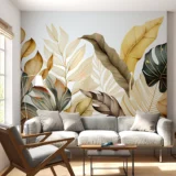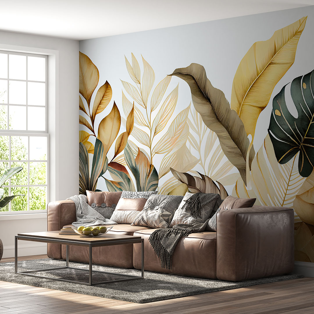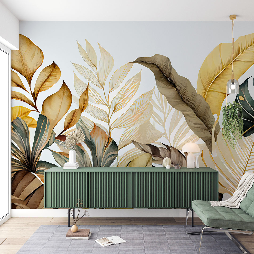 - Duvar Posteri: Tropik yaprakların altın ışıltısını evinize taşıyan bu poster, oturma odası, yemek odası veya ofis gibi mekanlara lüks ve zarafet katar.
