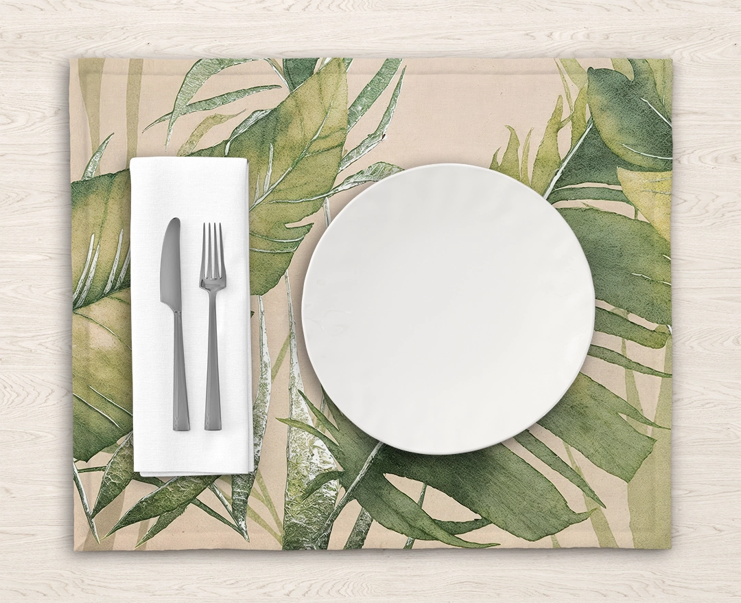 • Amerikan Servis: Yemek masasında kullanıldığında, her bir öğünü özel ve huzurlu bir ziyafete dönüştürür. Tropik yaprakların dinginliği, yemeklerinizi daha keyifli hale getirir.
