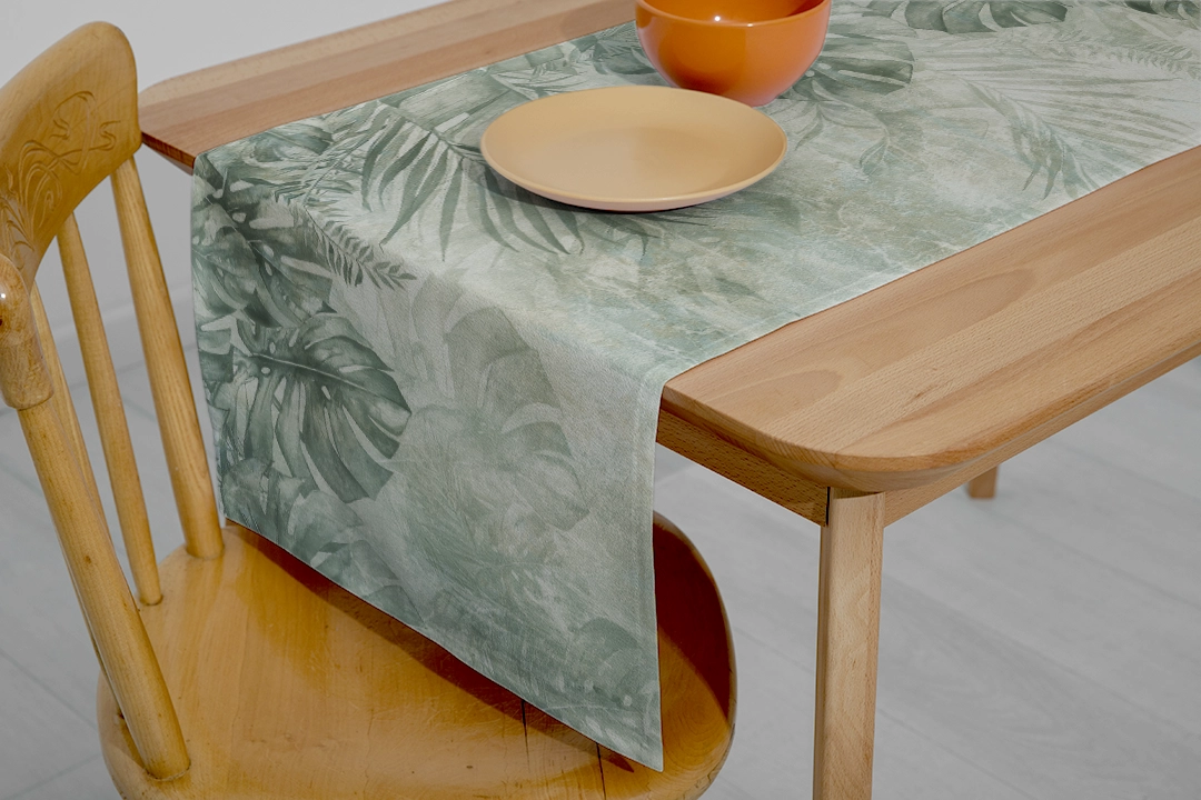 - Runner: Uzun bir masanın ortasına yerleştirildiğinde, pastel yeşil yaprakların desenlerini sergiler. Yemeklerinize hem görsel bir şölen hem de doğal bir zarafet katar.