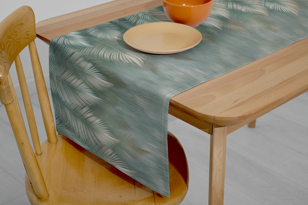 • Runner: Uzun bir masanın ortasına yerleştirildiğinde, tropik yaprakların hareketli desenlerini sergiler. Yemeklerinize hem görsel hem de canlı bir zenginlik katar.