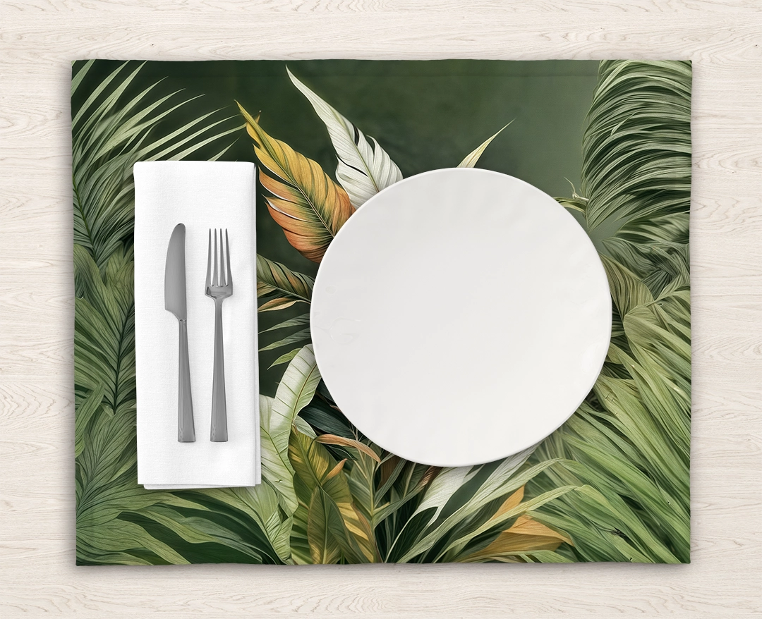 • Runner: Uzun bir masanın ortasına yerleştirildiğinde, yeşil yaprakların desenlerini sergiler. Yemeklerinize hem görsel bir şölen hem de tropikal bir zarafet katar.