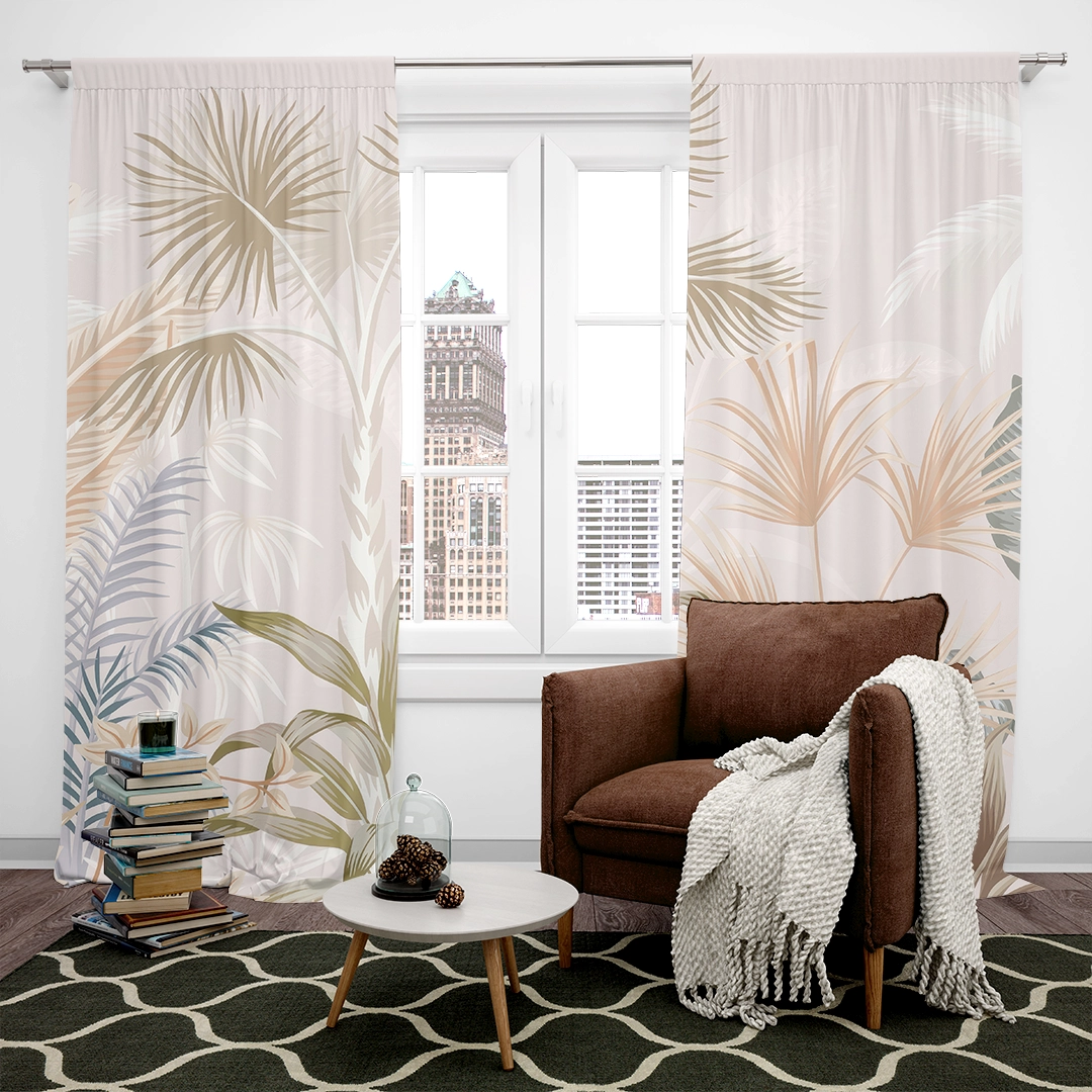 Bu tasarım, tropikal bir bahçenin huzurlu ve rüya gibi atmosferini yansıtıyor. Pastel tonlardaki yaprakların hafif dansı ve renklerin zarif uyumu, mekana dinginlik ve zarafet katıyor. Bu eser, tropikal bitkilerin doğal güzelliğini ve huzur veren etkisini vurgulayarak, izleyiciye rahatlatıcı bir deneyim sunuyor.