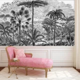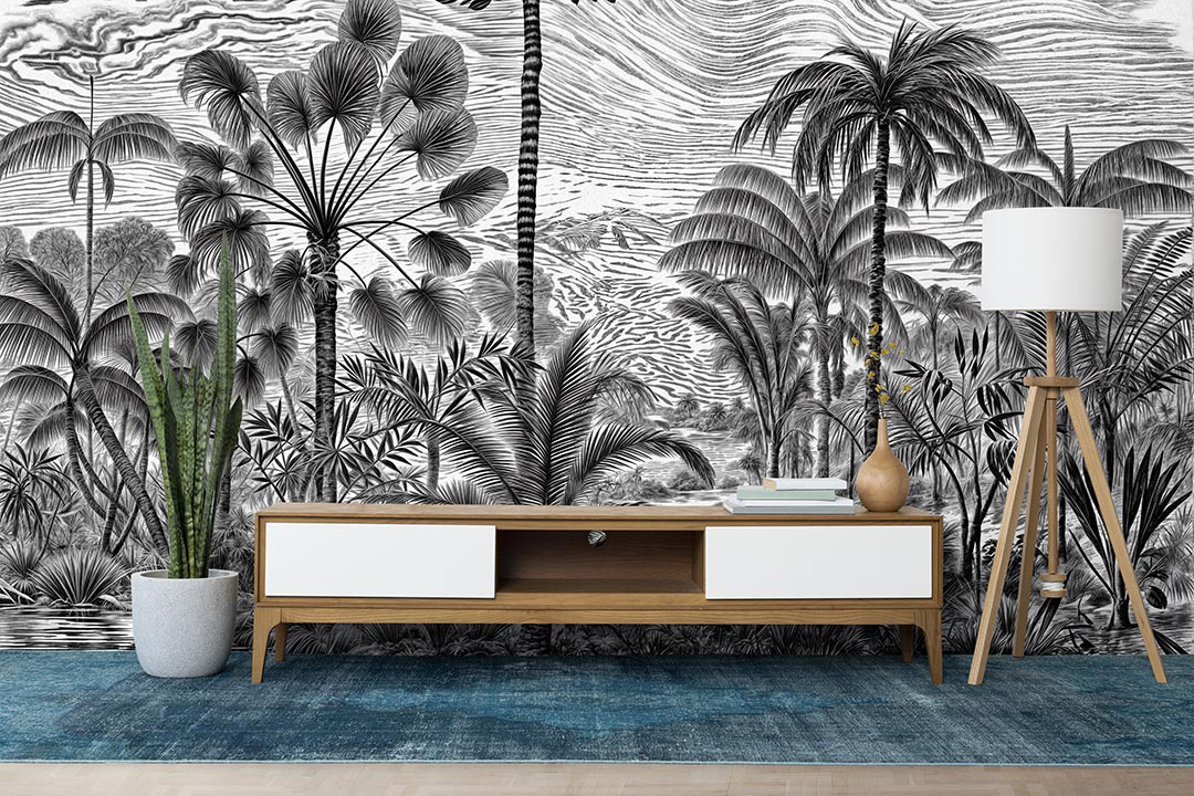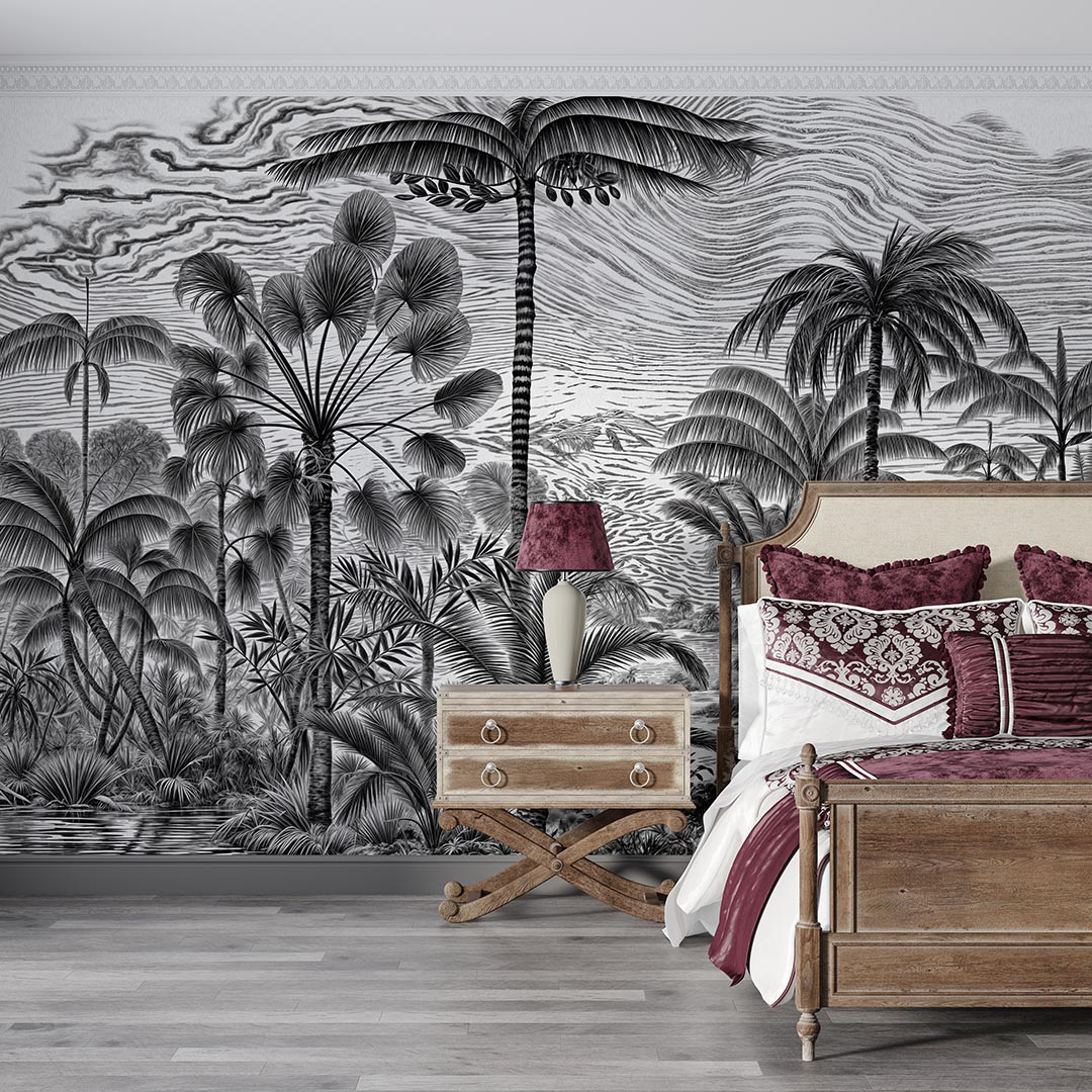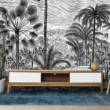 Bu tasarım, tropik bir ormanın gizemli ve büyüleyici atmosferini yansıtıyor. Yemyeşil palmiye ağaçları, derin gölge oyunları ve zengin yeşil tonları, izleyiciyi tropikal ormanın kalbine götürüyor. Her detay, tropik ormanın gizemini ve büyüleyici atmosferini yansıtarak mekanınıza hem doğal bir zarafet hem de egzotik bir cazibe katıyor. Bu eser, yaşam alanlarınıza tropik bir ormanın kapılarını aralıyor.